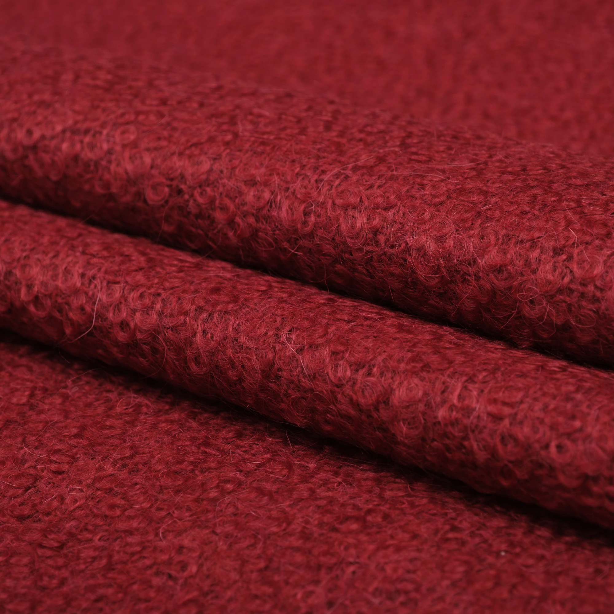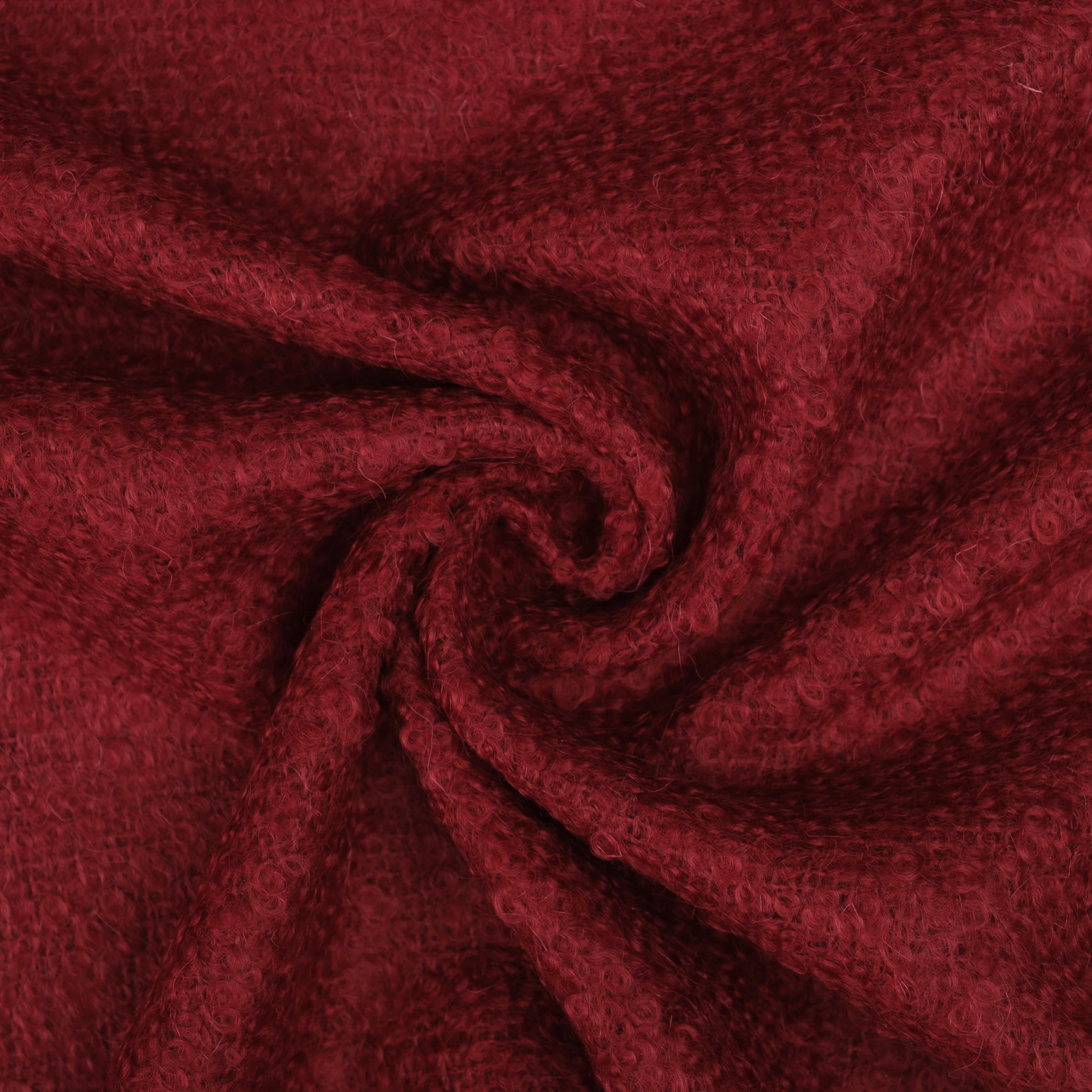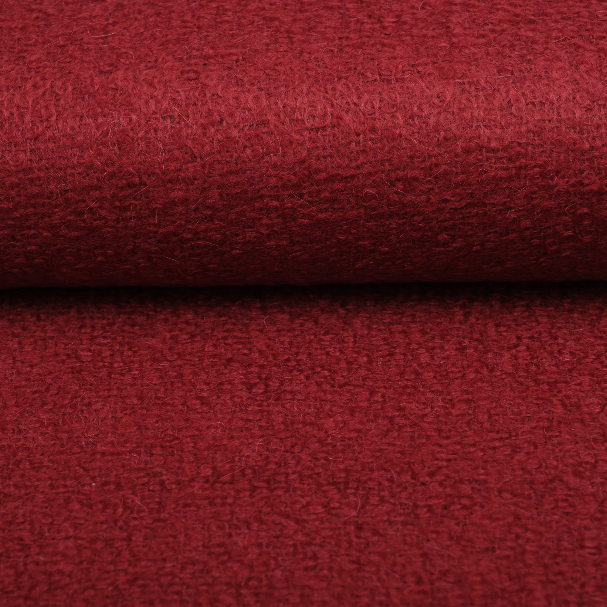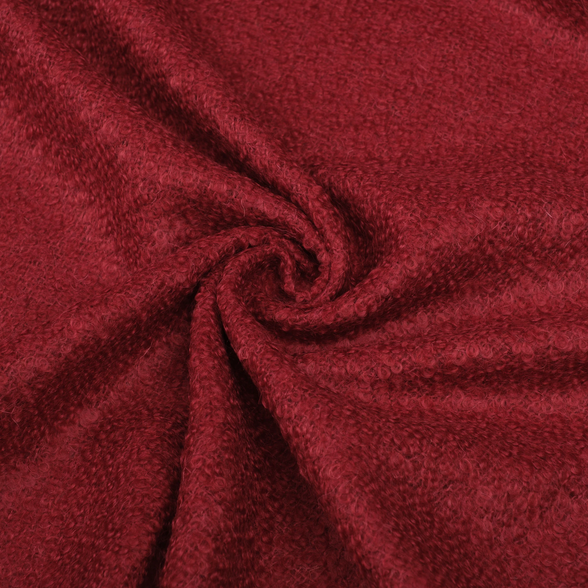 Luksusowa tkanina wełniana typu bucle w intensywnym, głębokim odcieniu czerwieni. Wykonana w 100% z naturalnej wełny, sprowadzona z Włoch, zachwyca miękką fakturą i eleganckim wyglądem.Idealna na sezon jesienno-zimowy – doskonała do szycia płaszczy, kurtek, poncz, żakietów, spódnic czy modnych oversizowych okryć wierzchnich. Splot jest luźny. Dzięki naturalnemu składowi tkanina jest ciepła, przewiewna i trwała, zachowując swój kształt i jakość przez długie lata.