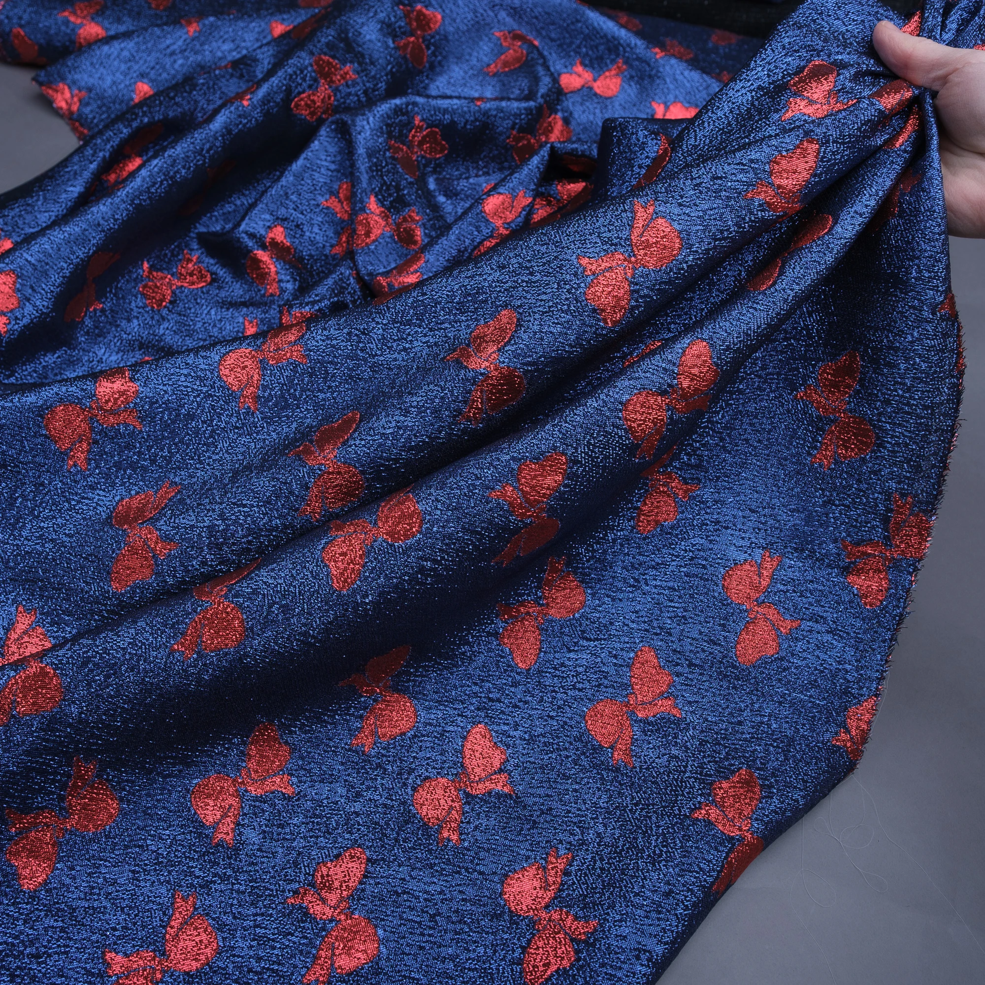 Elegancki włoski jedwab w kokardy to tkanina, z której można stworzyć niezwykle kobiece elementy garderoby utrzymane w najwyższej jakości. Lekka naturalna tkanina jest odpowiednia do uszycia wspaniałej jedwabnej bluzki, koszuli, topu, tuniki, kimona, spódnicy albo sukienki. Jedwab z lureksem sprawdzi się na stroje wieczorowe.
