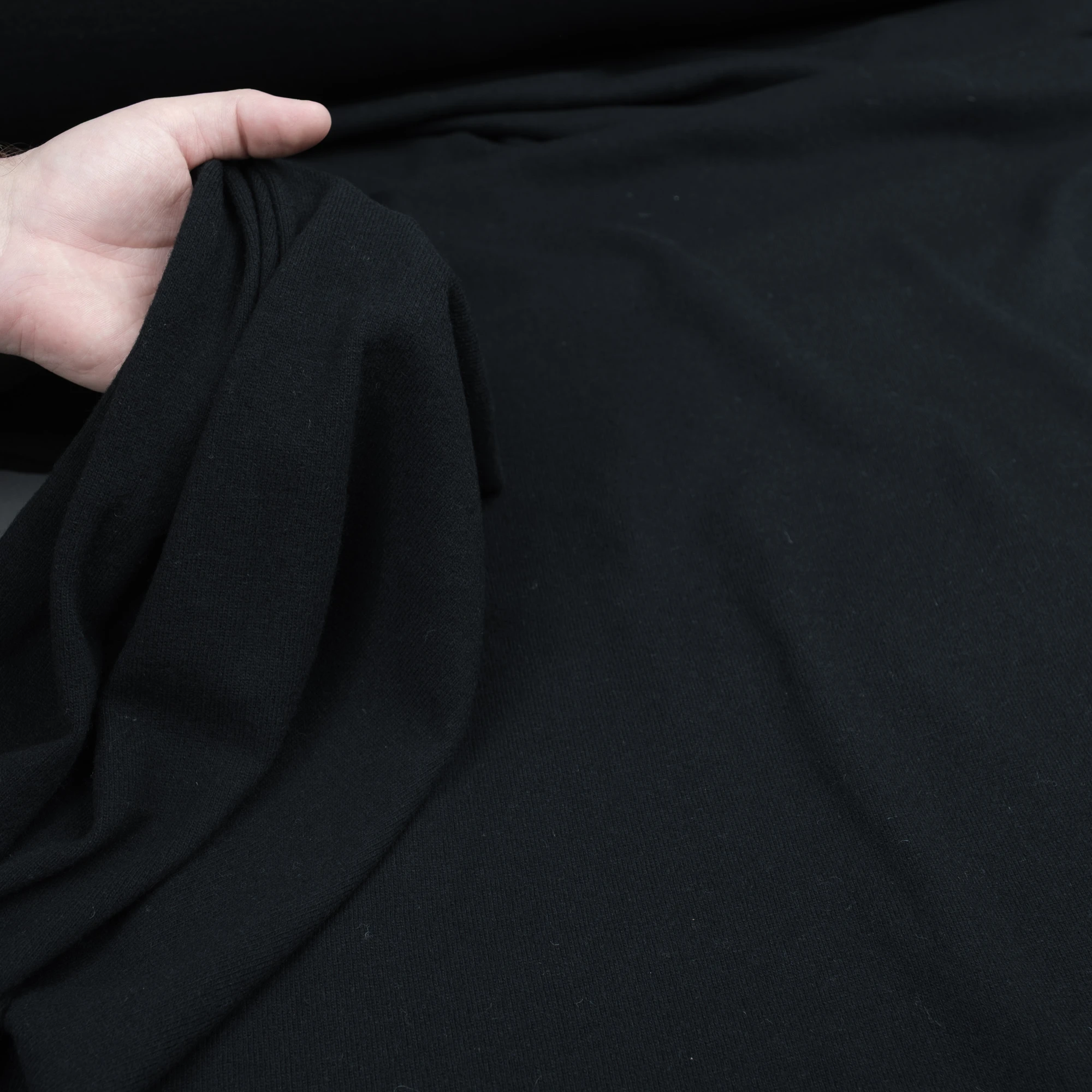 Doskonała włoska cienka wełna z dodatkiem kaszmiru swetrowa w kolorze czarnym to propozycja odpowiednia dla wszystkich tych, którzy nawet w chłodne dni chcą wyglądać stylowo. Nasza cienka dzianina została wyprodukowana z czystej owczej wełny oraz kaszmiru, cenionego za właściwości termiczne. Materiał jest dzianiną, dzięki czemu jest elastyczny, doskonale się rozciąga, gwarantując komfort podczas noszenia. Warto pamiętać, że szycie dzianin wymaga zastosowania elastycznych szwów, takich jak ściegi łańcuszkowe czy overlockowe i zastosowania specjalnej igły z zaokrąglonym czubkiem.