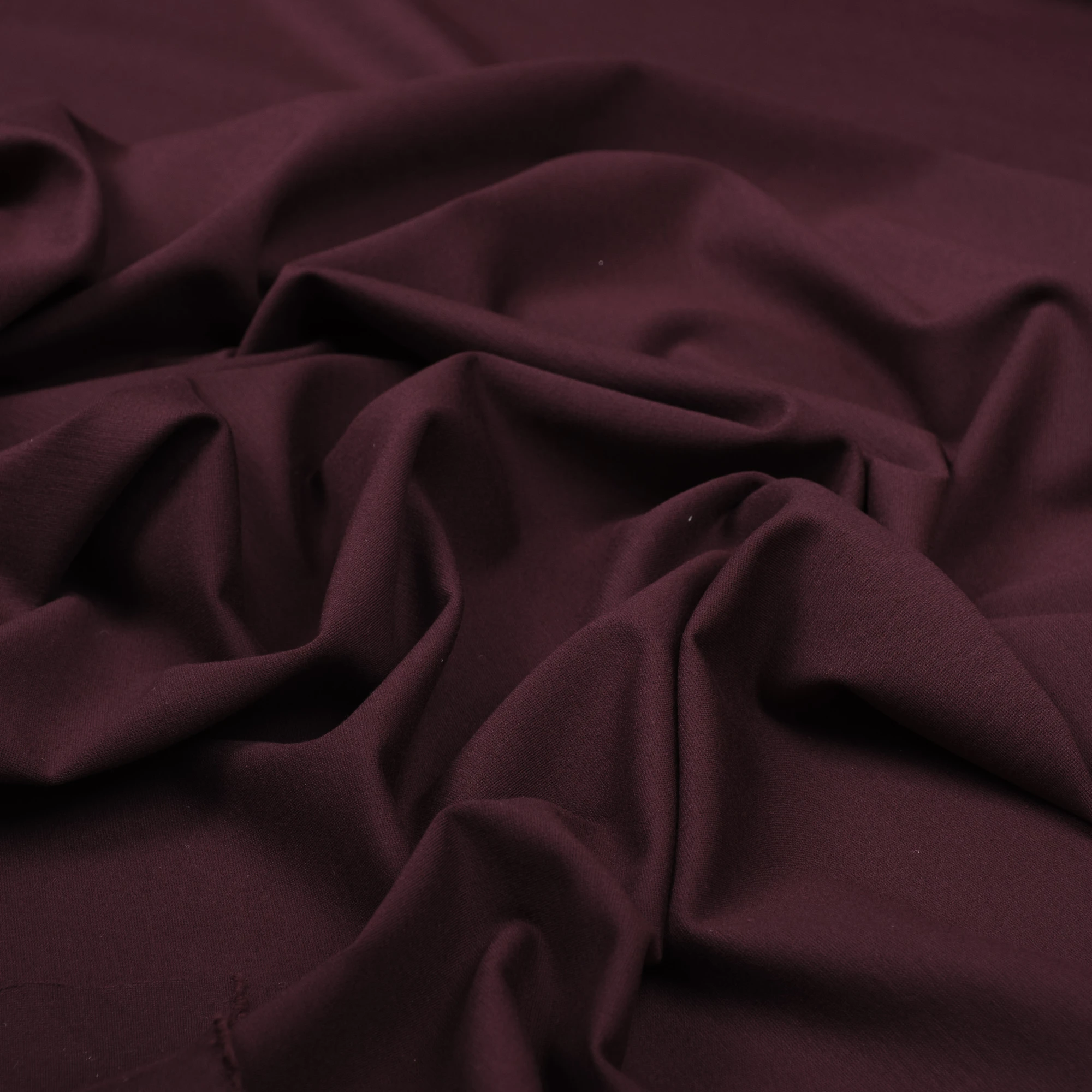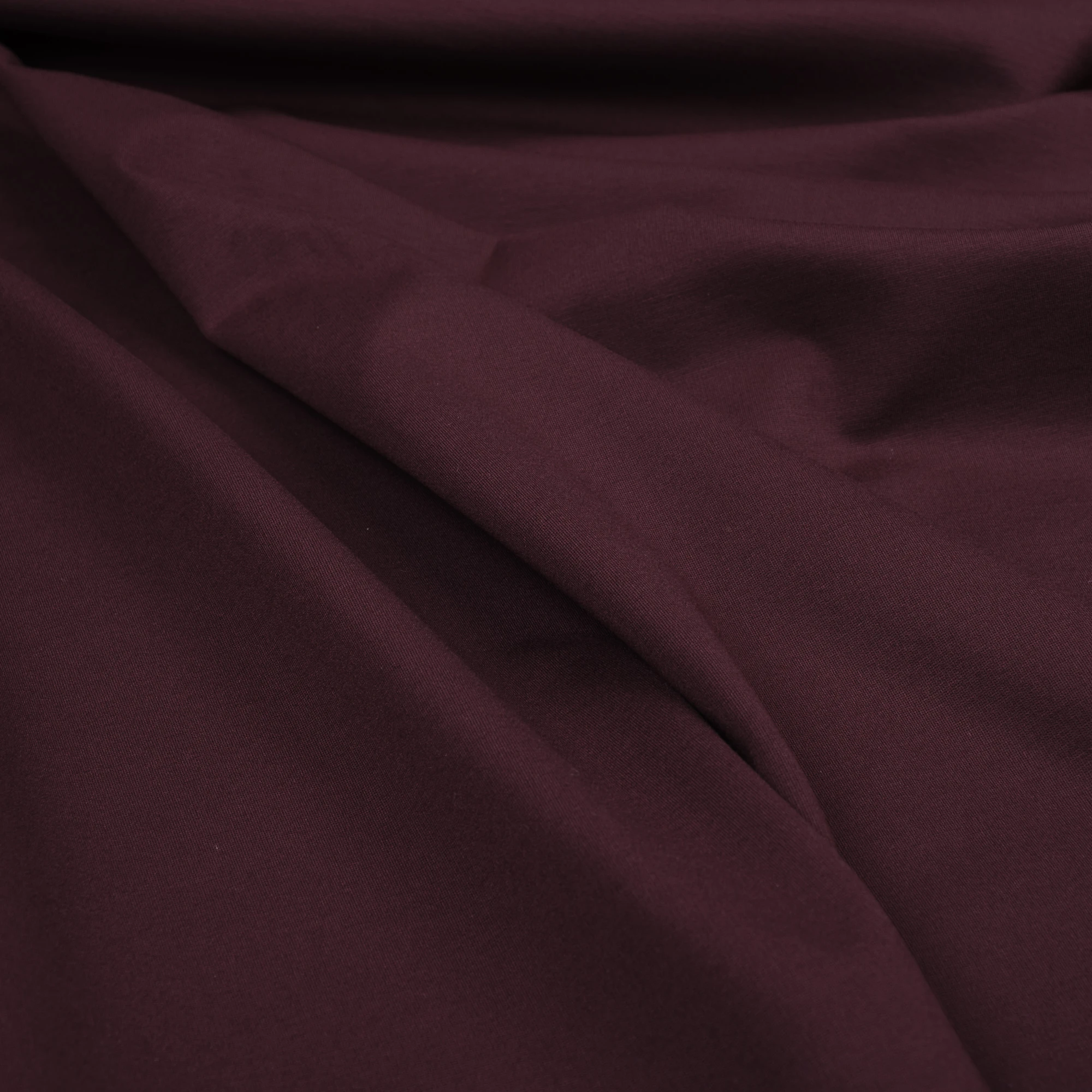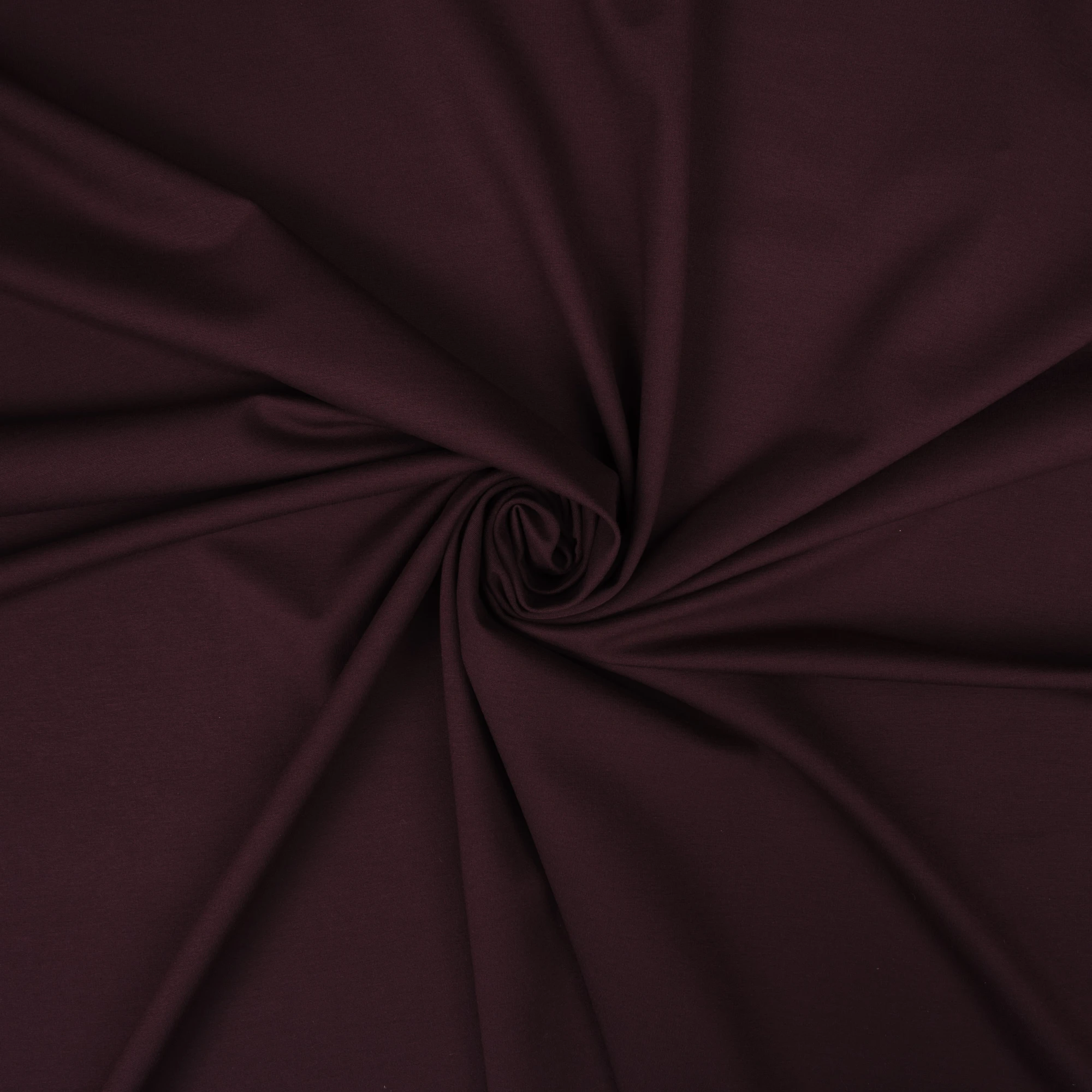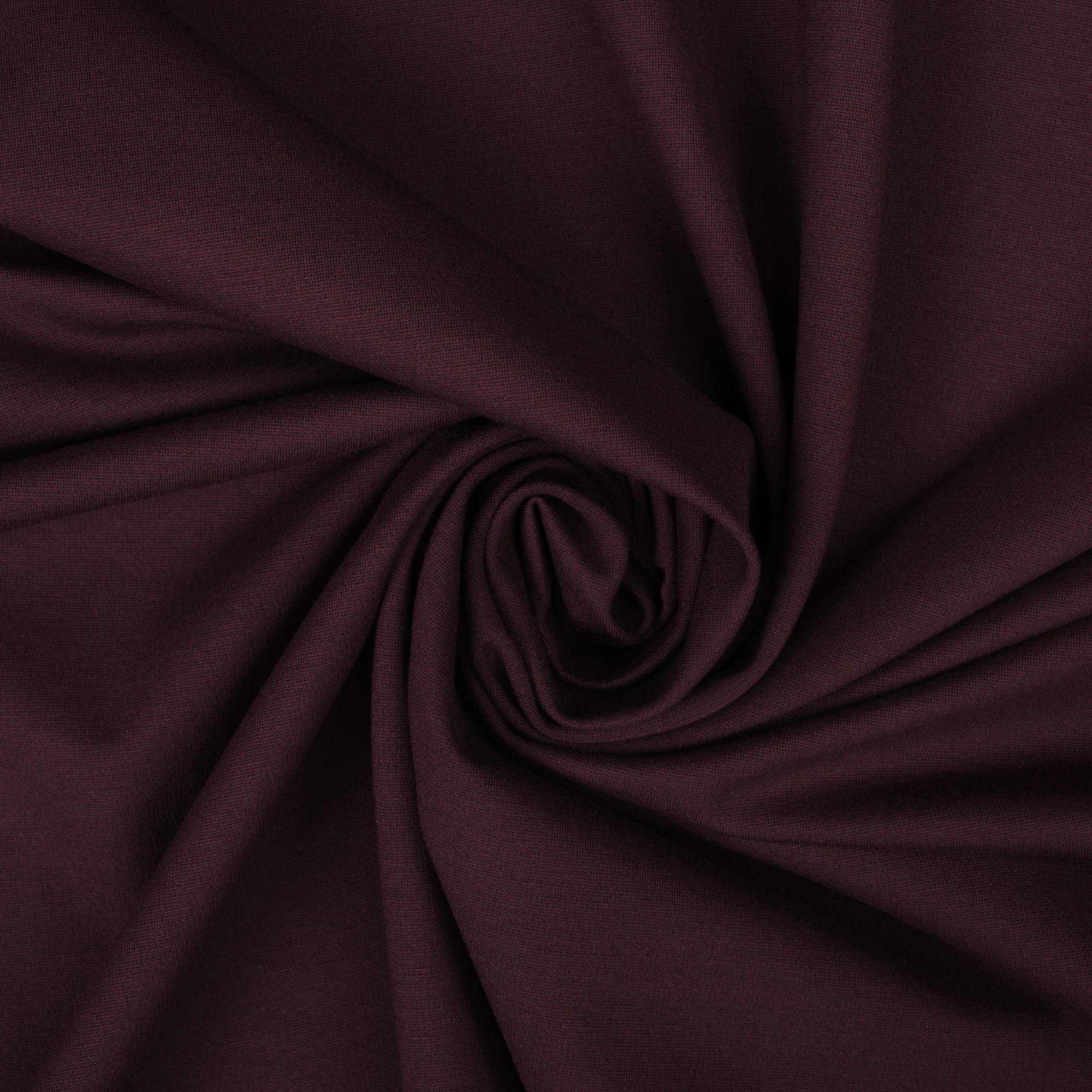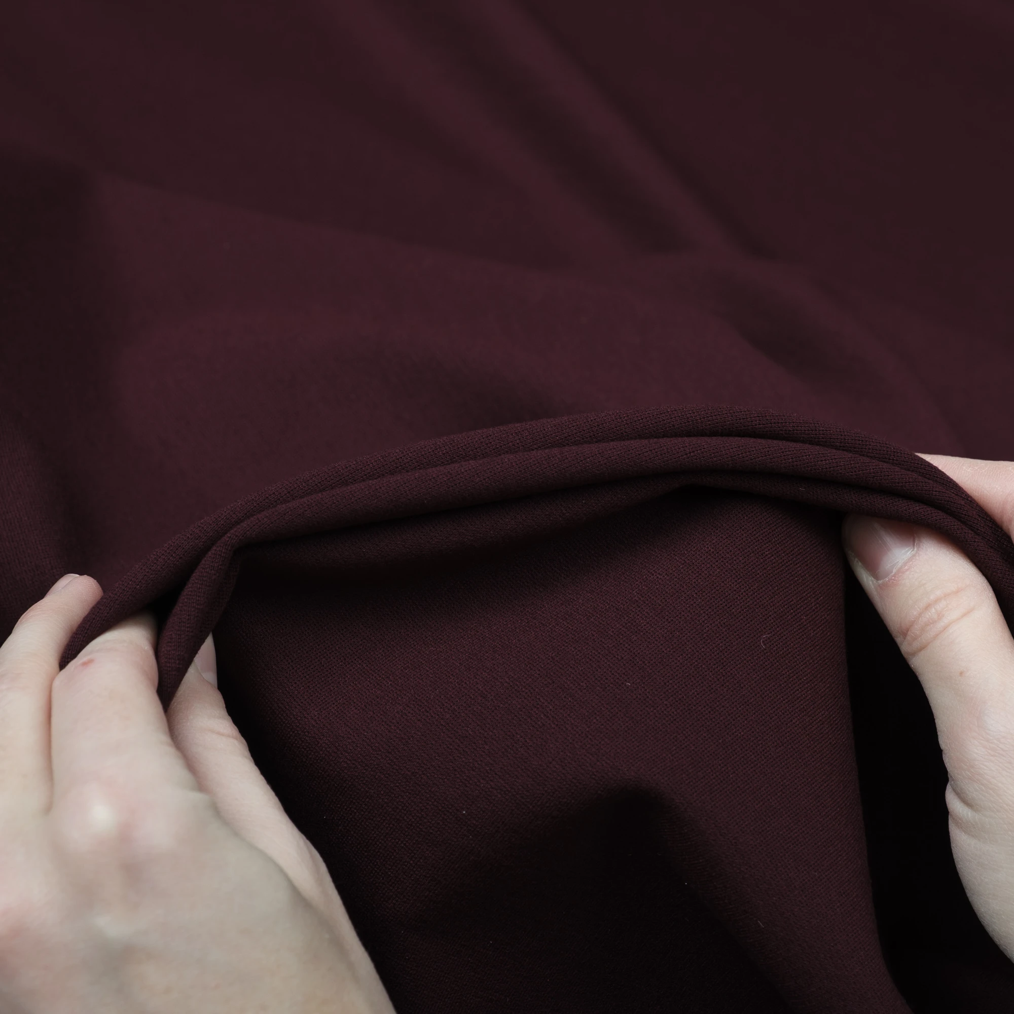 Luksusowa włoska dzianina Punto Milano w szlachetnym odcieniu burgundu to wysokogatunkowy materiał wiskozowy o doskonałej elastyczności i miękkości. Struktura dzianiny jest gęsta i zwarta, dzięki czemu materiał pięknie się układa, zachowując formę i elegancki wygląd.