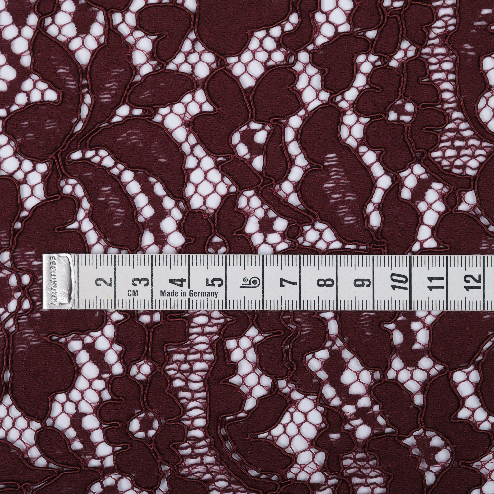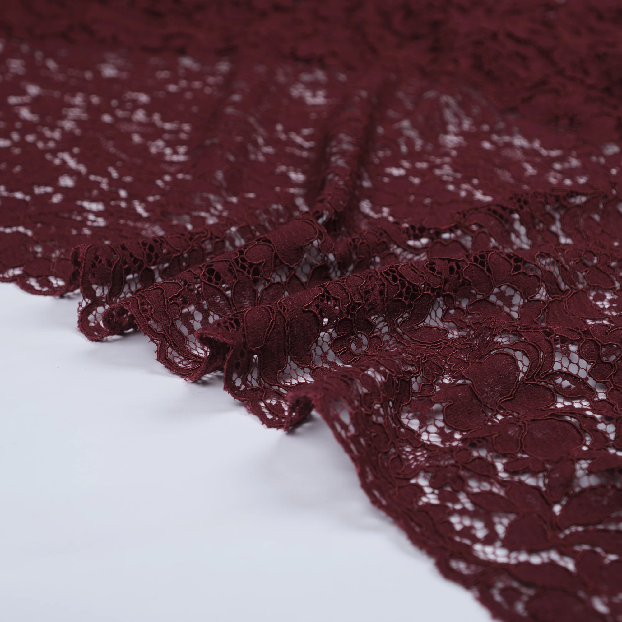 Ekskluzywna koronka gipiura to esencja elegancji i najwyższej jakości rzemiosła. Wyprodukowana we Włoszech przy użyciu nowoczesnej technologii dziewiarskiej, wyróżnia się trójwymiarowym kwiatowym wzorem z matowymi haftami oraz delikatnym połyskiem nici, widocznym na prawej stronie materiału.