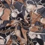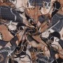 Dzięki domieszce elastanu materiał pięknie układa się na sylwetce i zapewnia większy komfort noszenia. Połączenie głębokich odcieni brązu, czerni i złota nadaje projektom klasy i ponadczasowego charakteru.