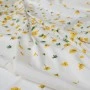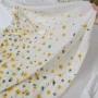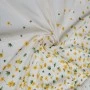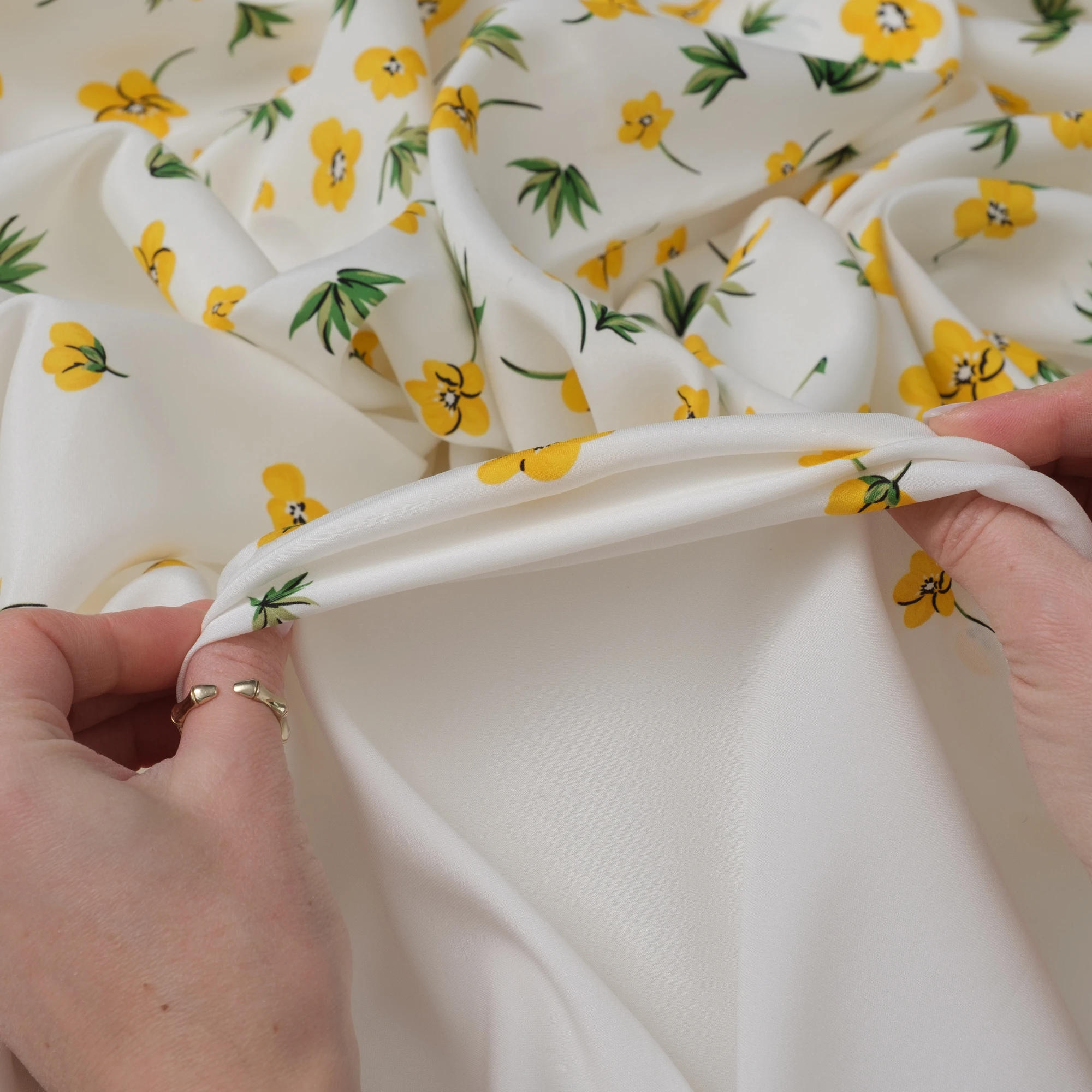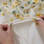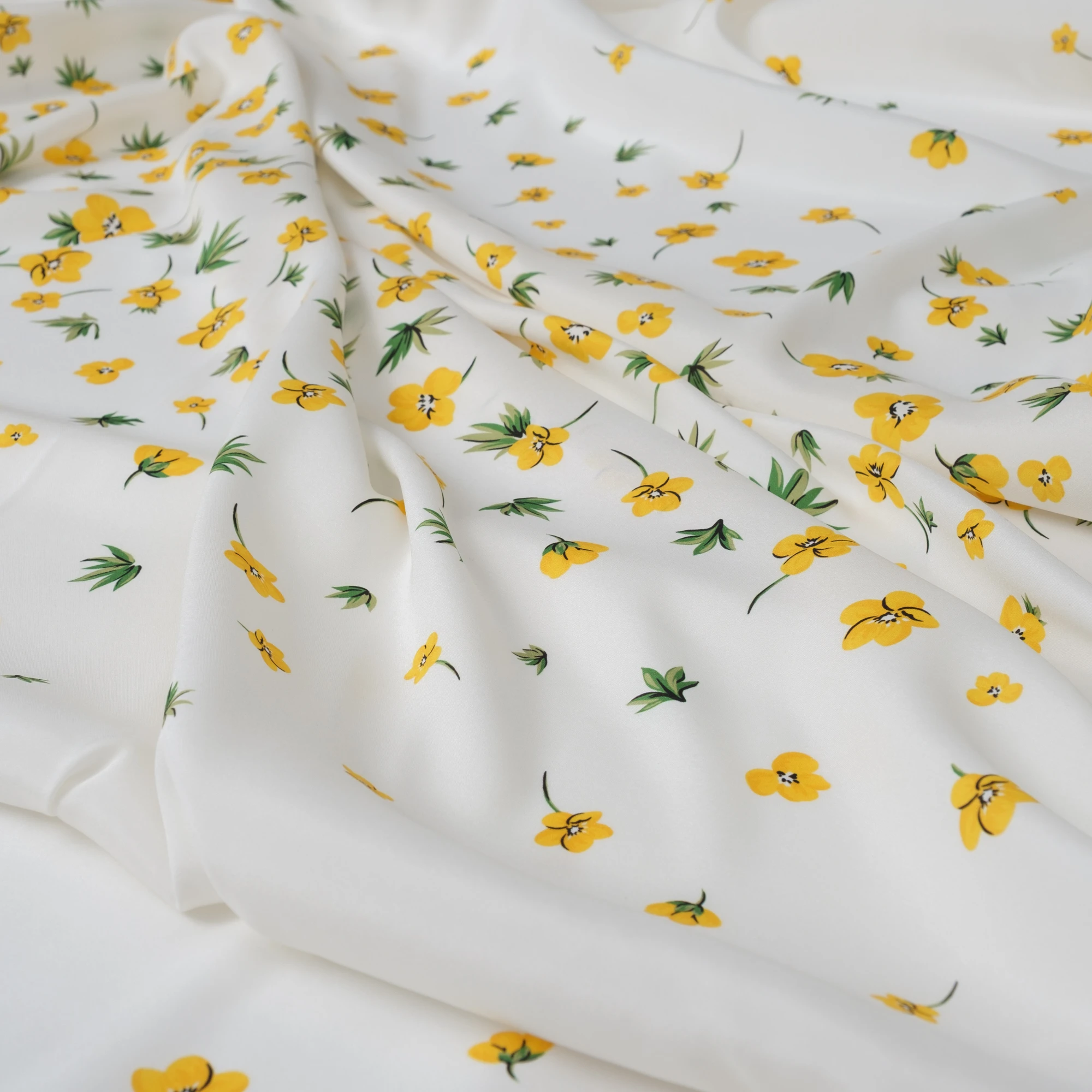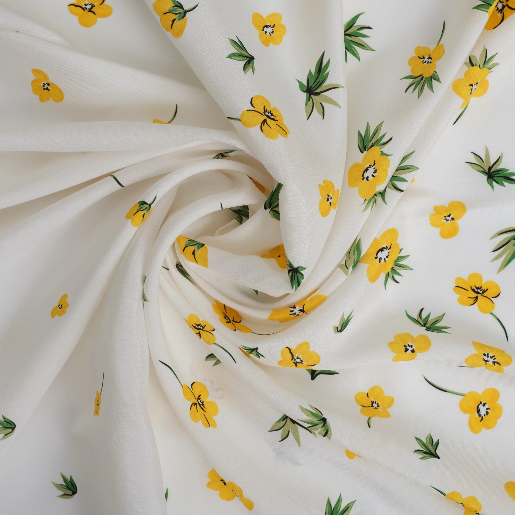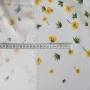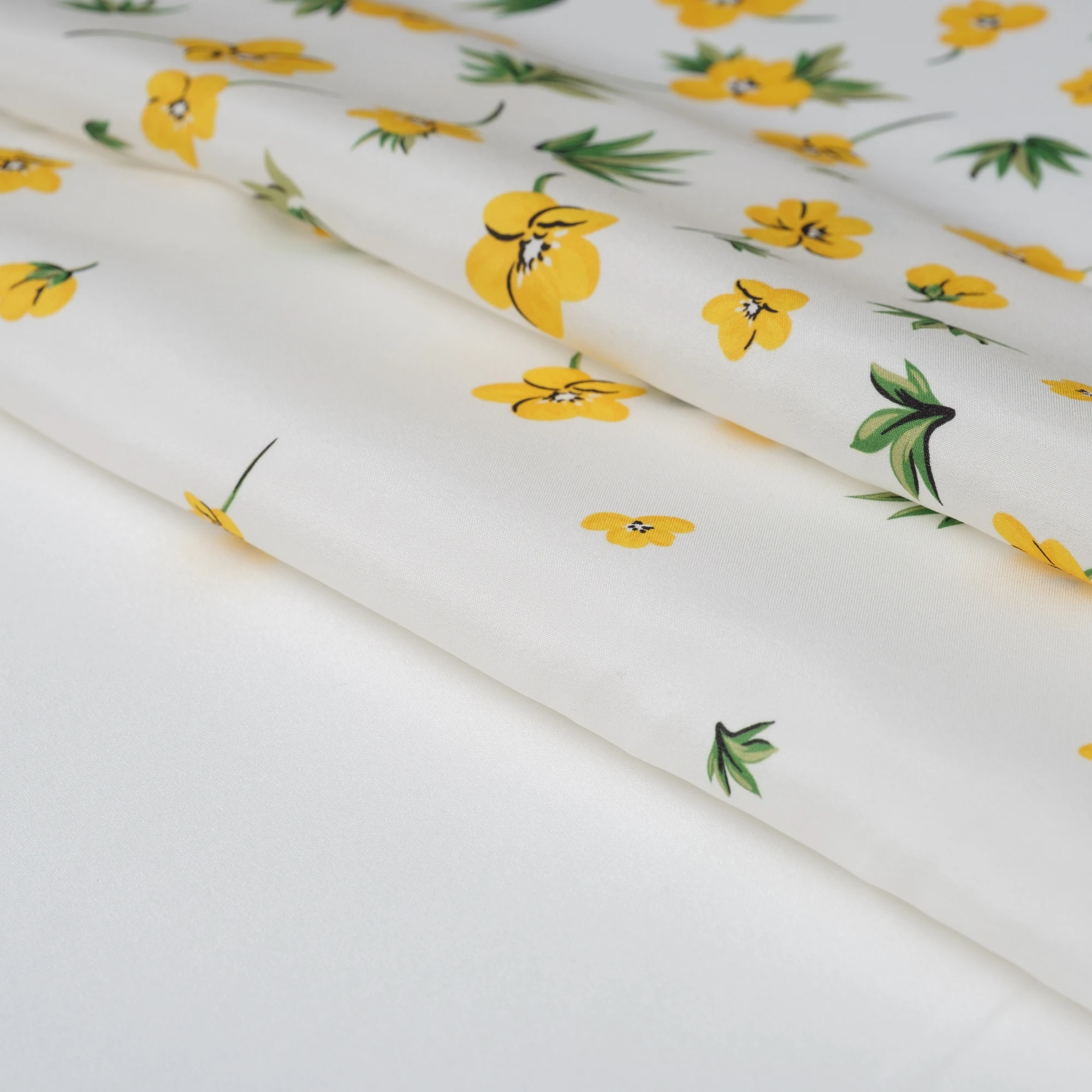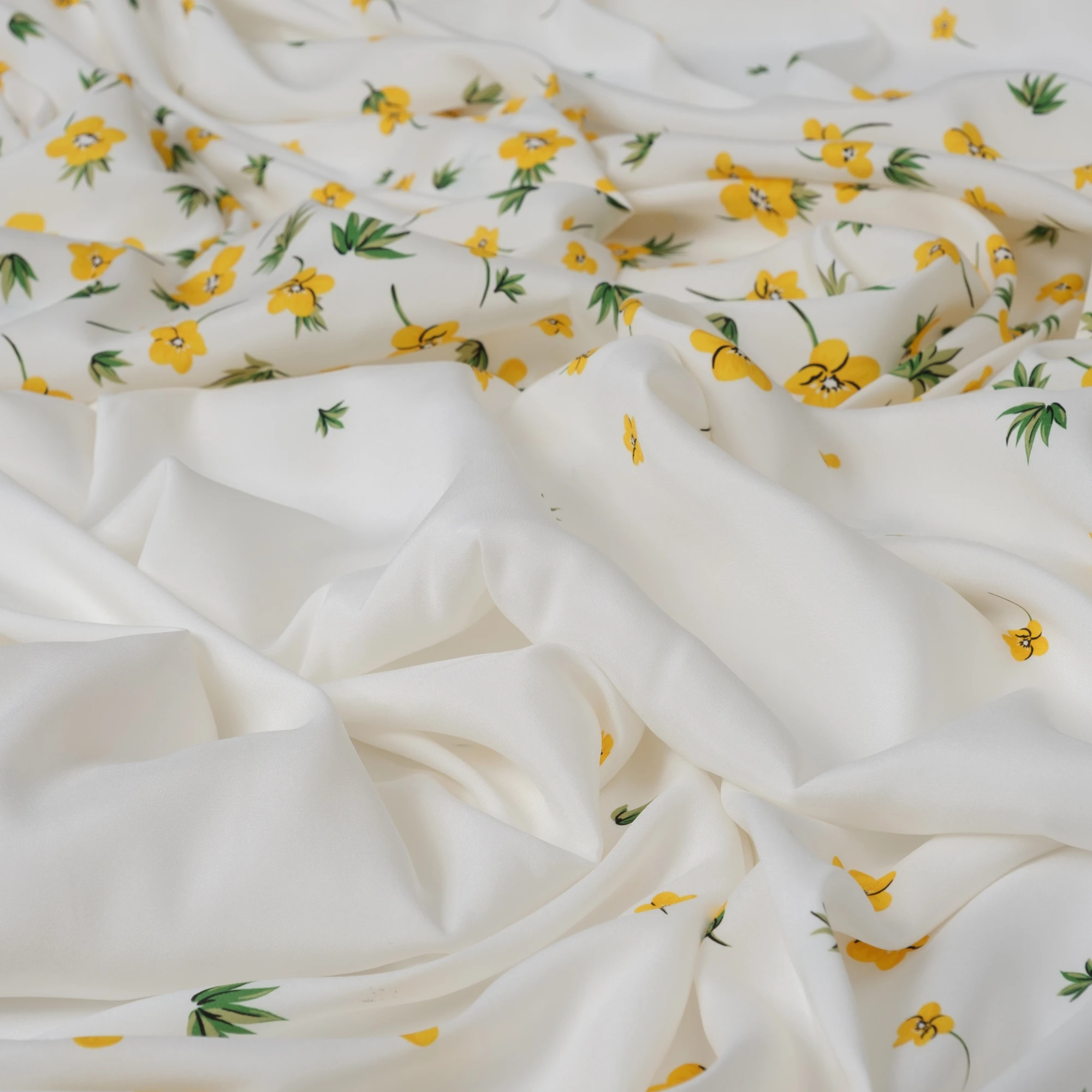 Ekskluzywny panel z elastycznej satyny jedwabnej o wymiarach 130 × 140 cm, zaprojektowany z myślą o wyjątkowych, dopracowanych projektach. Na jasnym, eleganckim tle rozmieszczony został delikatny, kwiatowy motyw w odcieniach żółci i zieleni, który subtelnie zagęszcza się ku dołowi, tworząc efekt naturalnej kompozycji.