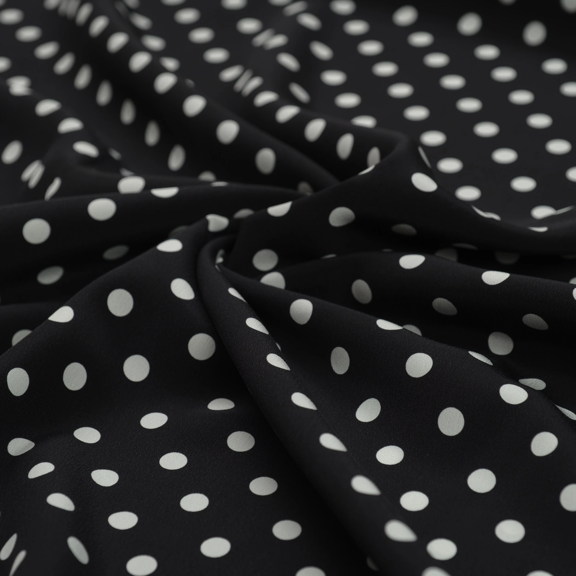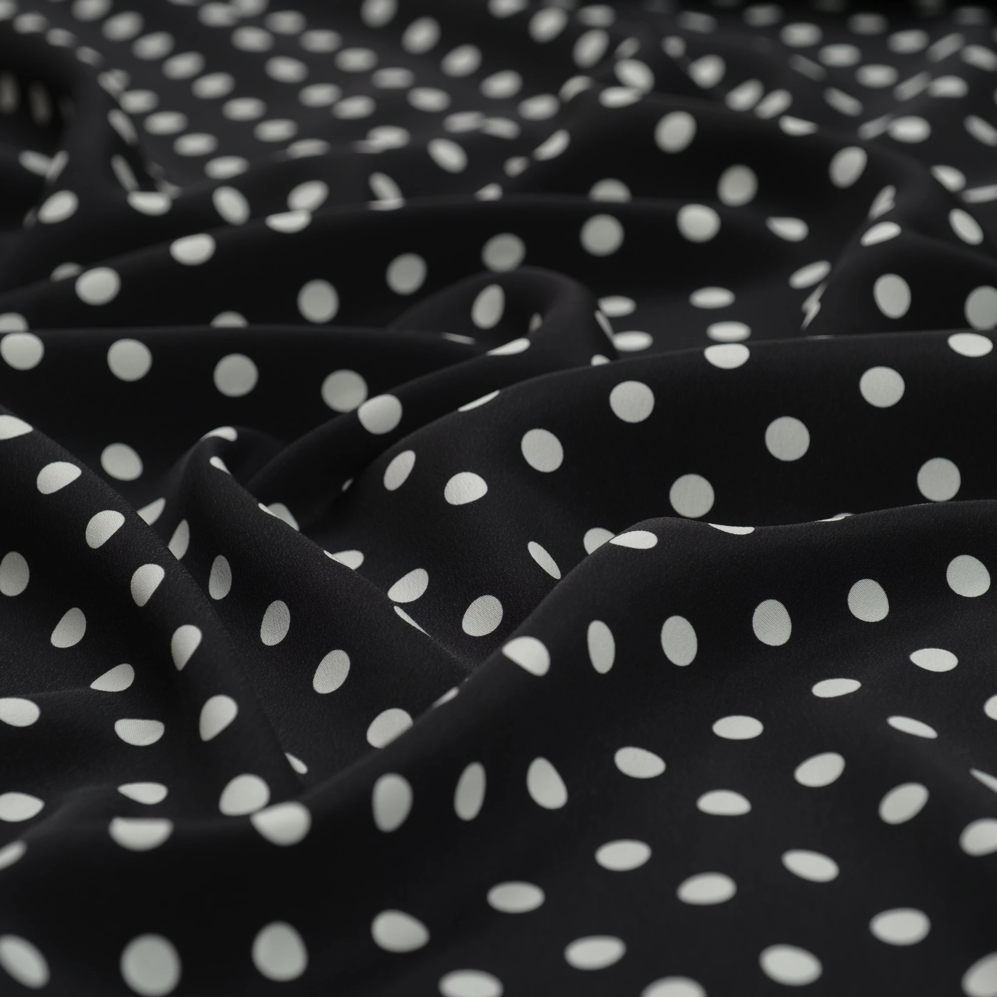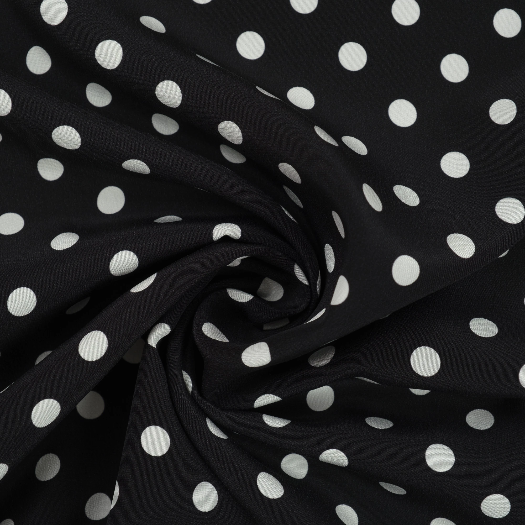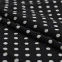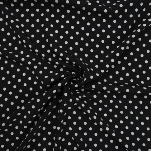 Jedwabny krepdeszyn w groszki to propozycja dla romantycznych dusz. Wspaniała wysokiej jakości krepowa jedwabna tkanina została wyprodukowana w najlepszych włoskich warsztatach tkackich. Cechą charakterystyczną tej naturalnej tkaniny jest ziarnista faktura, powstała za sprawą zastosowania mocno skręconych nitek. Jedwabny krepdeszyn jest niezwykle sprężysty, po zgnieceniu natychmiast powraca do pierwotnego stanu. Wielką zaletą tego jedwabiu jest to, że daje stabilne szwy, w których nie dochodzi do przesuwania się nitek. Krepdeszyn jest także lekki, cienki i zwiewny, dzięki czemu uszyte z niego stroje są niesamowicie kobiece. Lewa strona materiału jest biała.