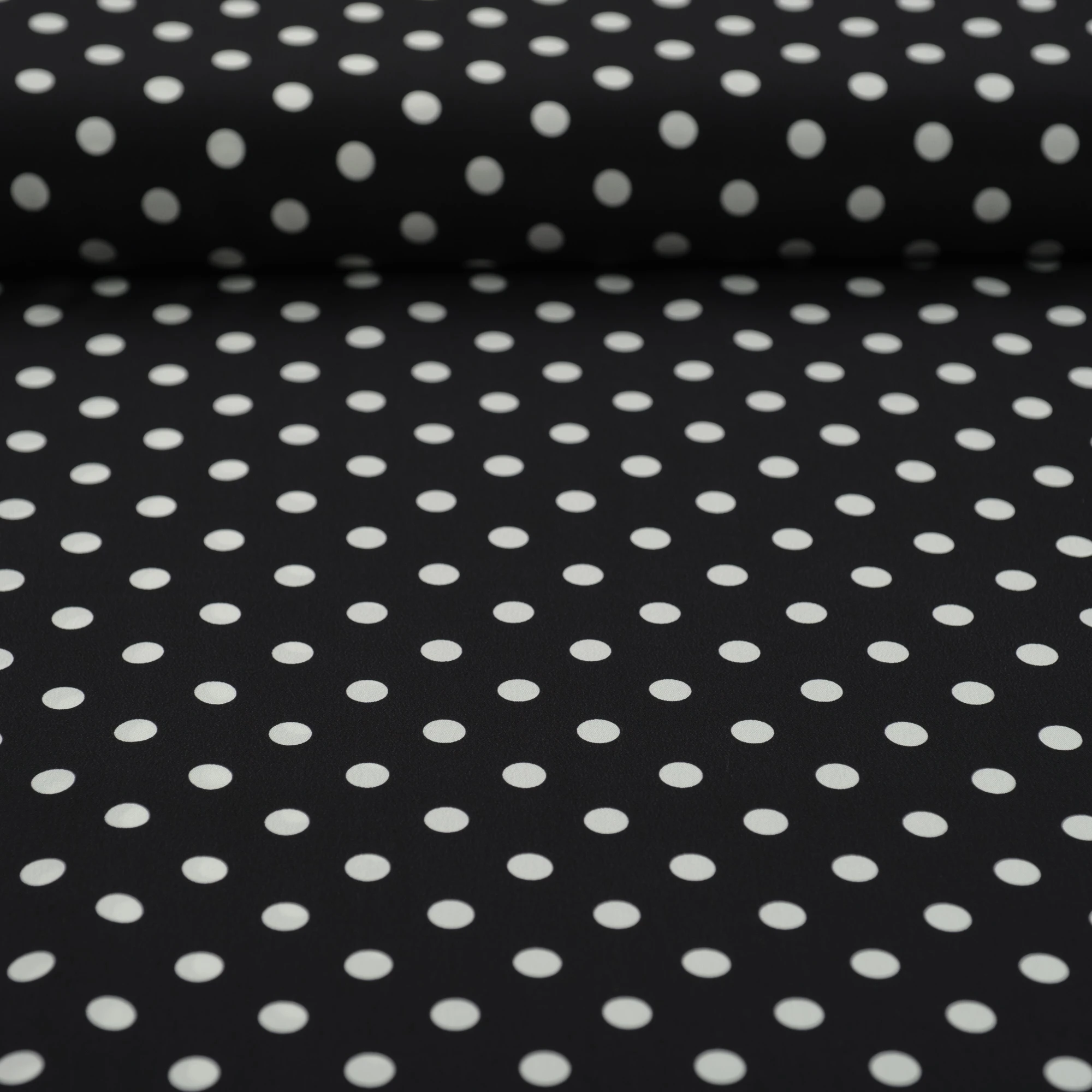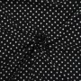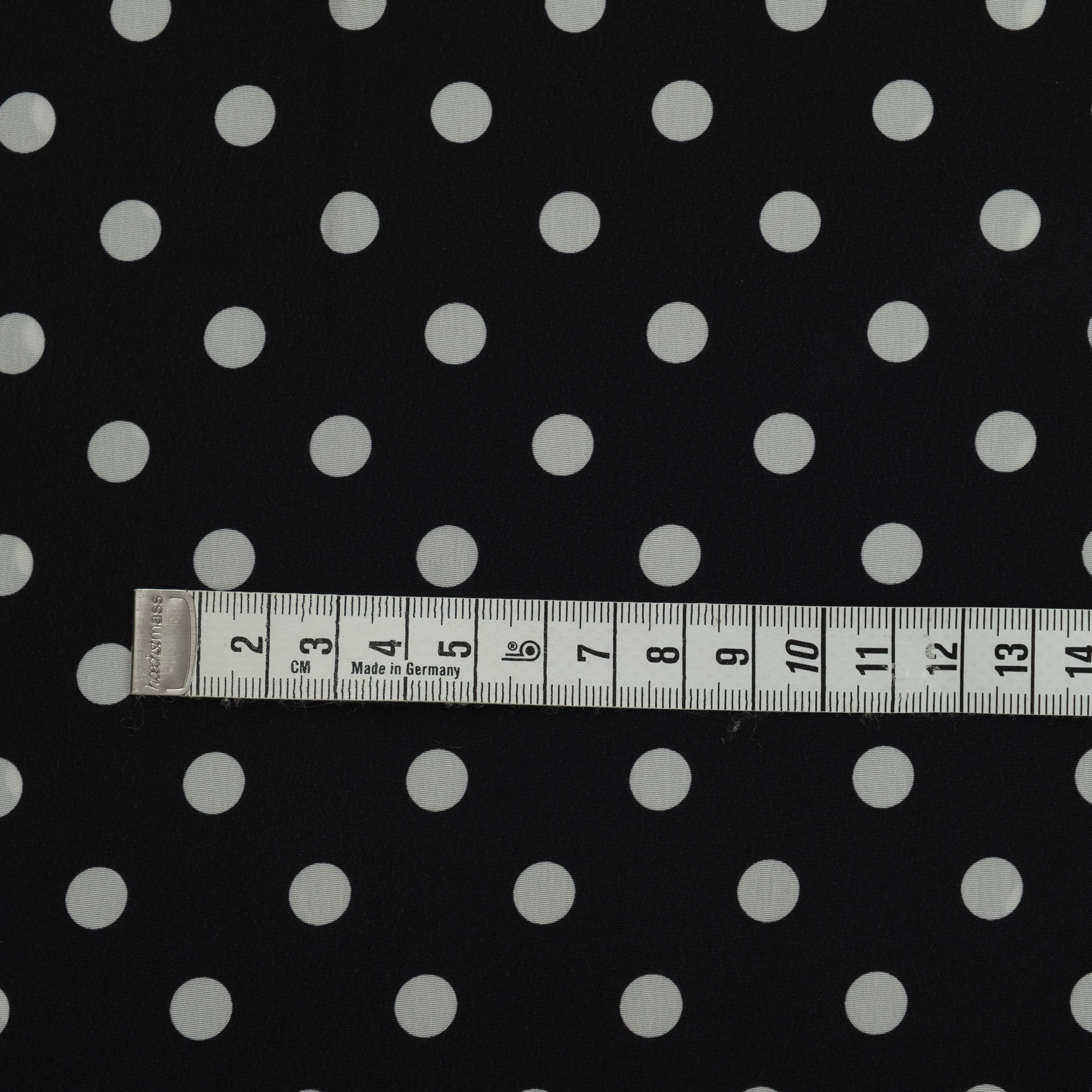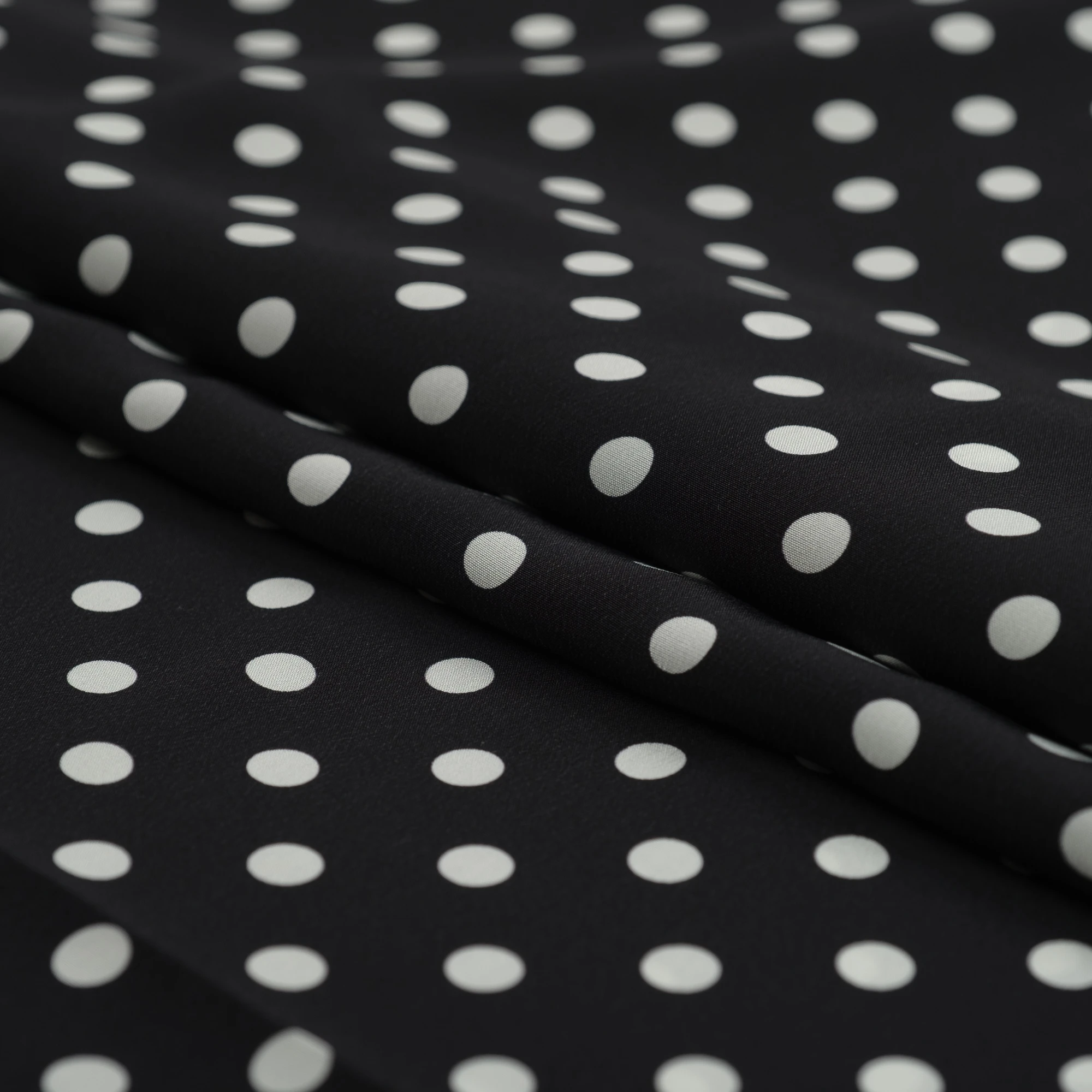 Jedwabny krepdeszyn w groszki to propozycja dla romantycznych dusz. Wspaniała wysokiej jakości krepowa jedwabna tkanina została wyprodukowana w najlepszych włoskich warsztatach tkackich. Cechą charakterystyczną tej naturalnej tkaniny jest ziarnista faktura, powstała za sprawą zastosowania mocno skręconych nitek. Jedwabny krepdeszyn jest niezwykle sprężysty, po zgnieceniu natychmiast powraca do pierwotnego stanu. Wielką zaletą tego jedwabiu jest to, że daje stabilne szwy, w których nie dochodzi do przesuwania się nitek. Krepdeszyn jest także lekki, cienki i zwiewny, dzięki czemu uszyte z niego stroje są niesamowicie kobiece. Lewa strona materiału jest biała.