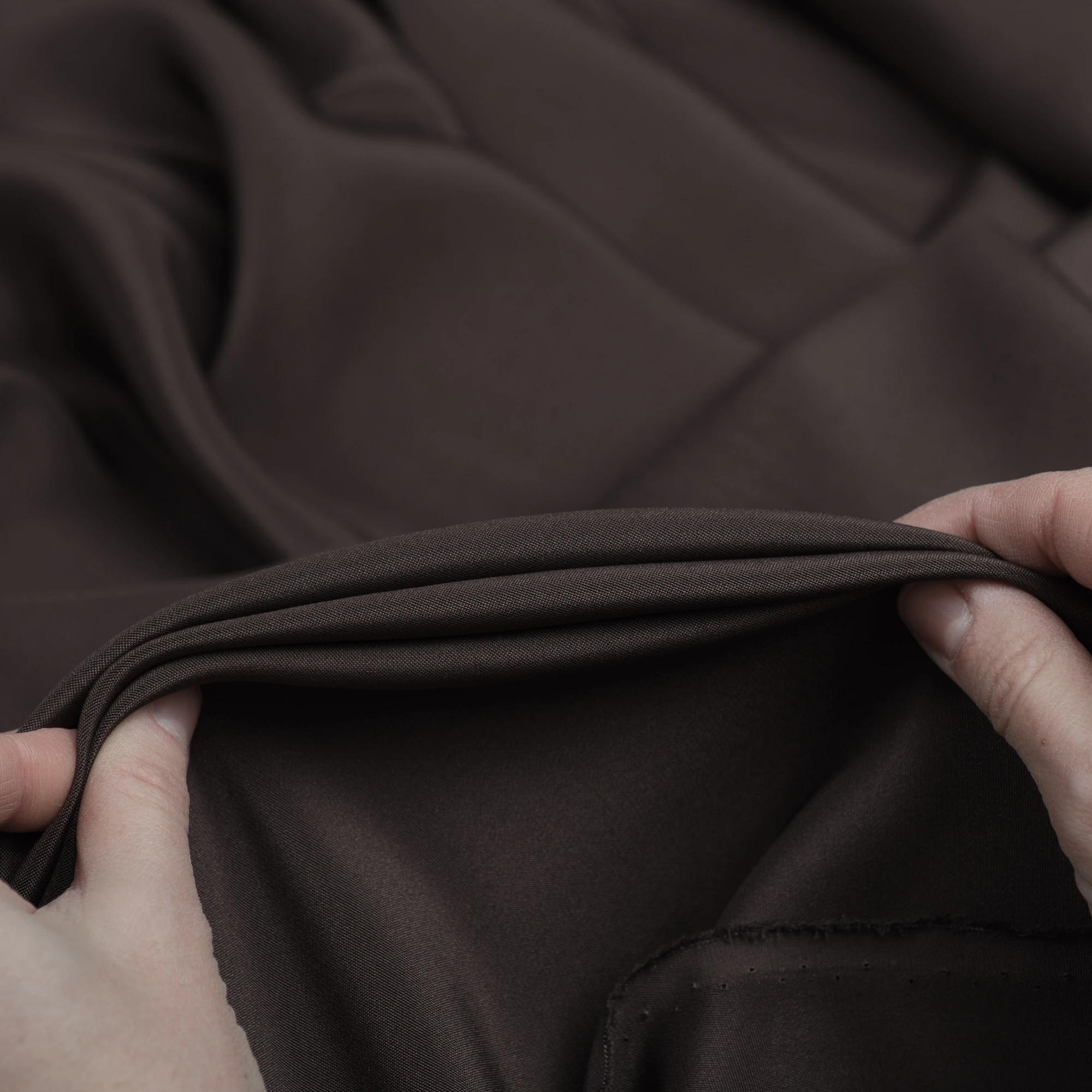 Szlachetna tkanina jedwabna typu cady o gładkiej, lekko matowej powierzchni i eleganckim, miękkim chwycie. Materiał jest średniej grubości, delikatnie mięsisty, dzięki czemu doskonale się układa – płynnie opada i tworzy miękkie, naturalne drapowania.