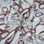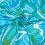 Oferowany naturalny morwowy jedwab o splocie płóciennym sygnowany marką Stella McCartney. Luksusowa tkanina jest lekka, lecąca, ma zwiewną strukturę co pozwala tkaninie ładnie się układać. Geometryczny wzór na ciemnym granacie jest dwustronny. Wysokiej jakości krepa jedwabna się nie gniecie i będzie idealna do uszycia sukienki, bluzki, koszuli topu czy lekkich jedwabnych spodni.