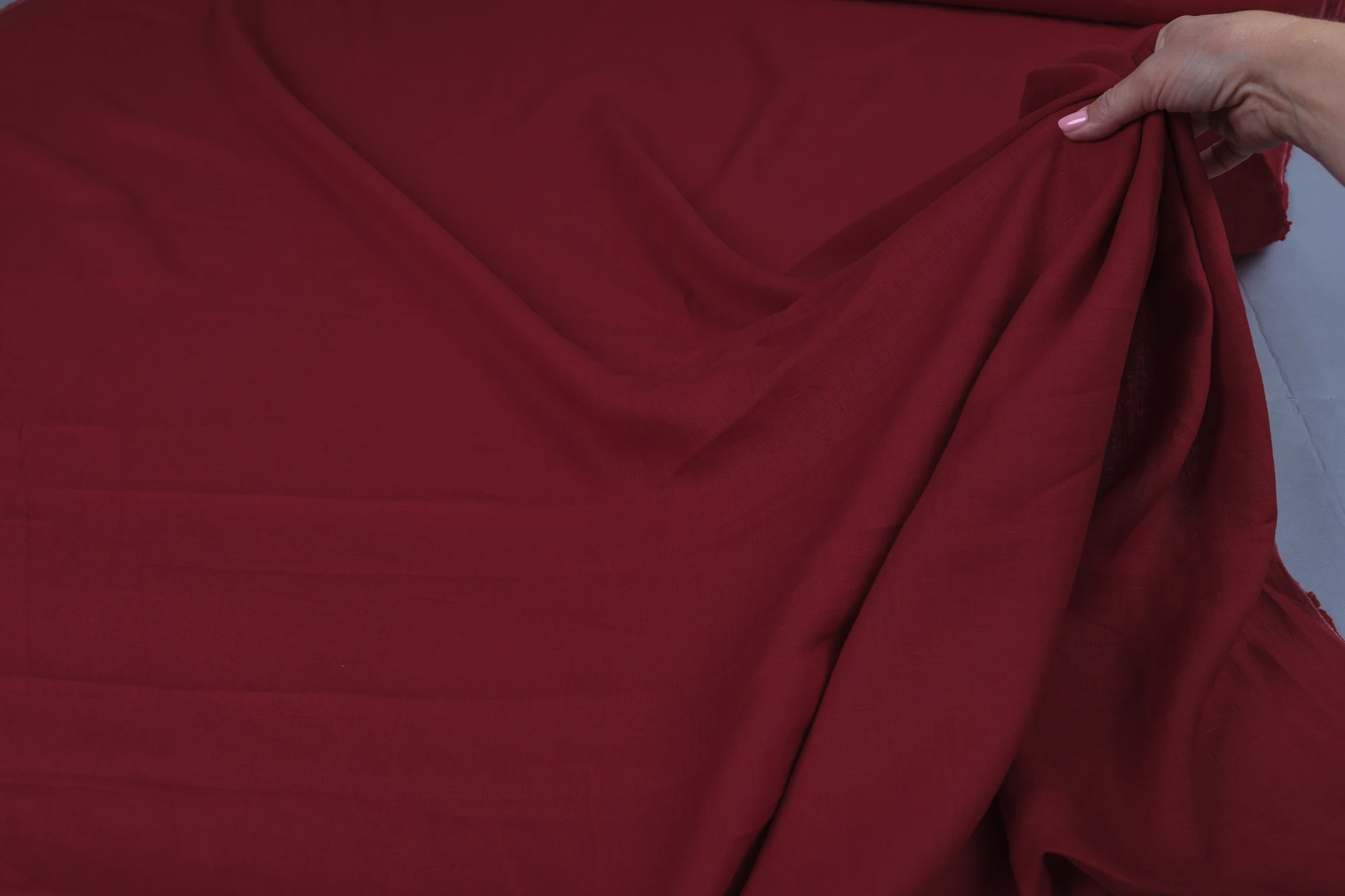 Tkanina lniana miękka w kolorze ciemnej wiśni