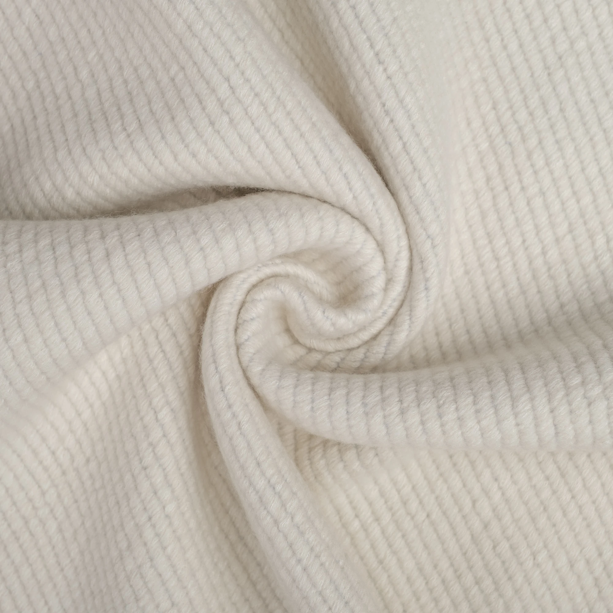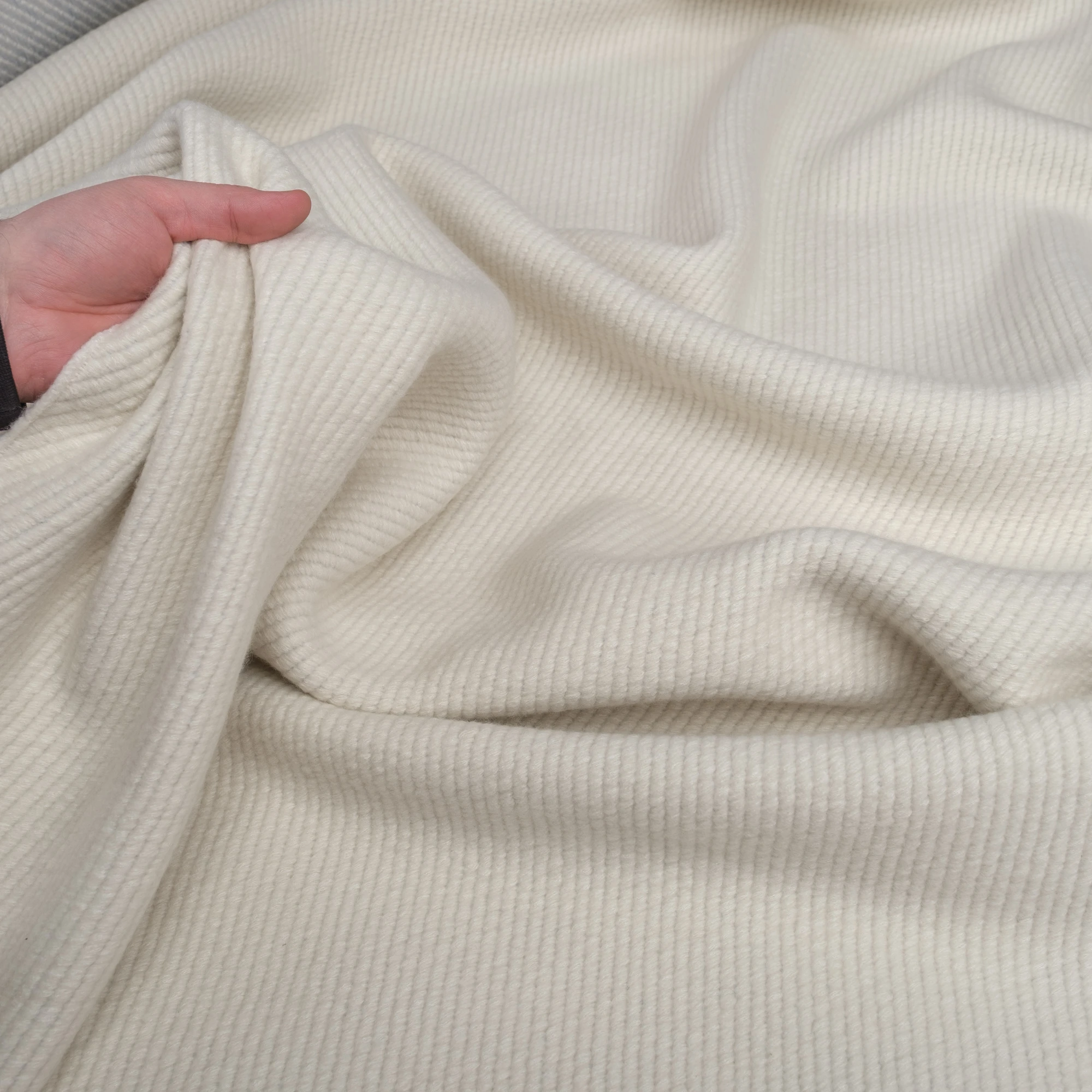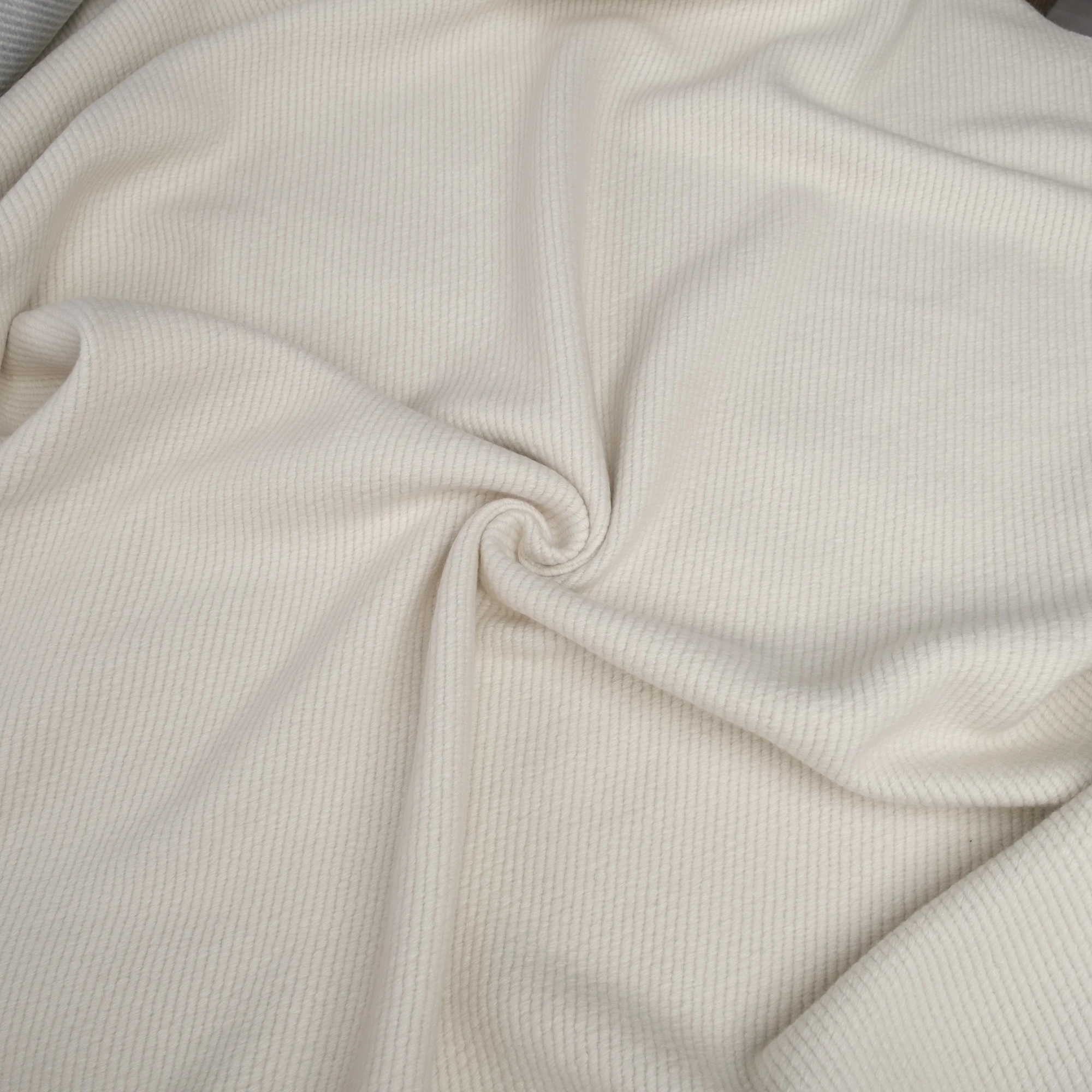 Jasny, kremowo-ecru odcień nadaje projektom świeżości i klasy, doskonale wpisując się zarówno w minimalistyczne, jak i bardziej wyrafinowane sylwetki. Delikatna faktura z subtelnym prążkiem dodaje głębi i podkreśla prestiż materiału.