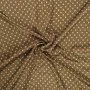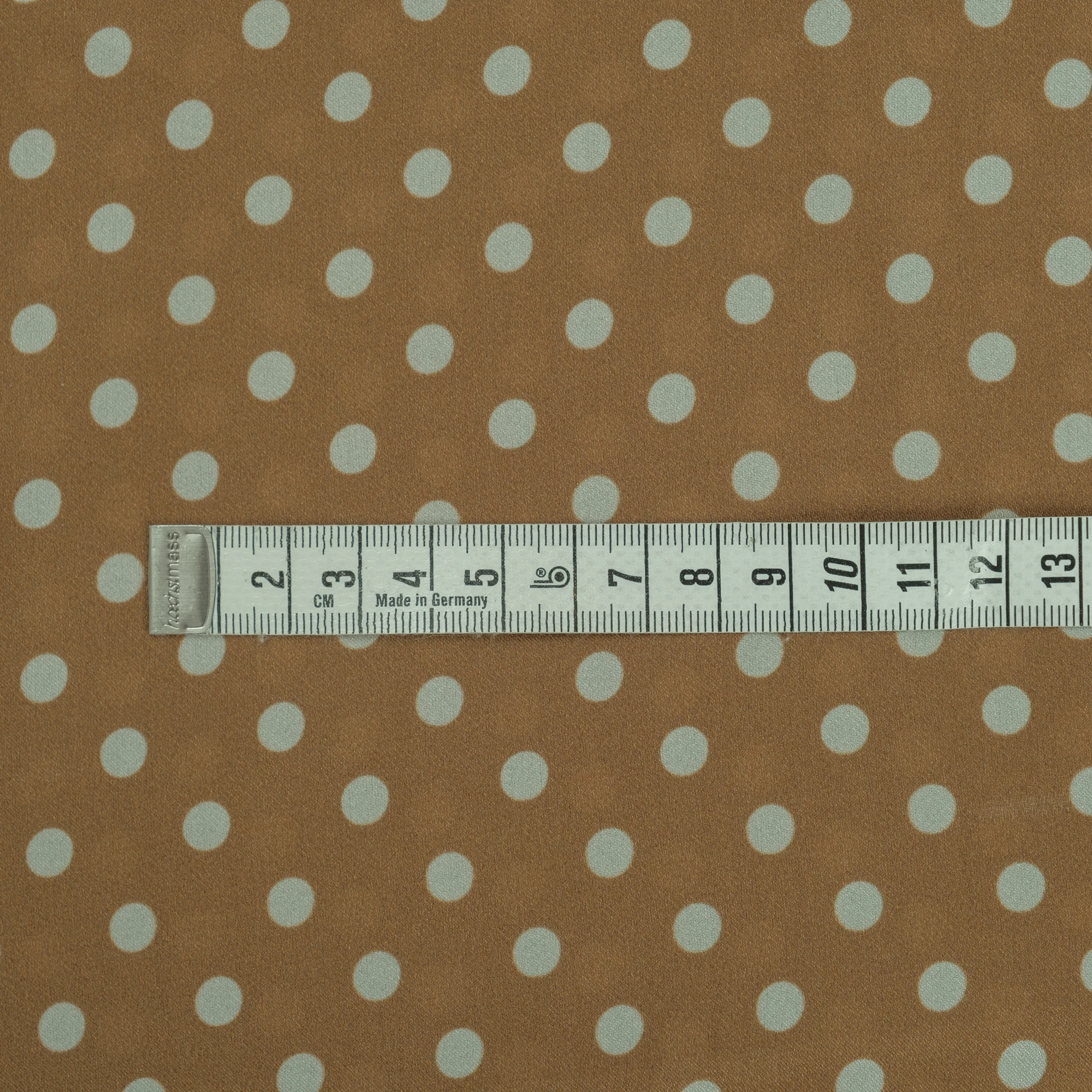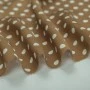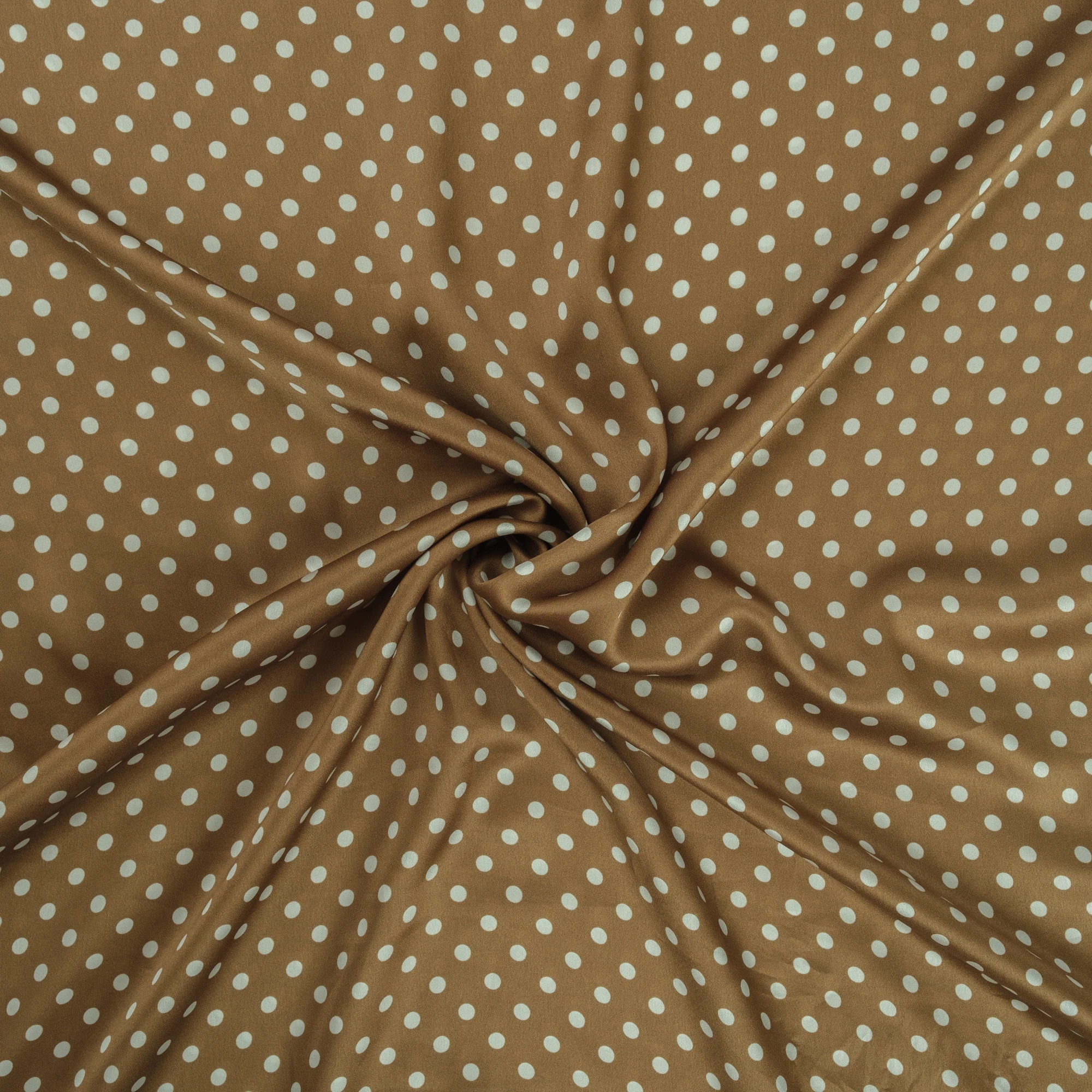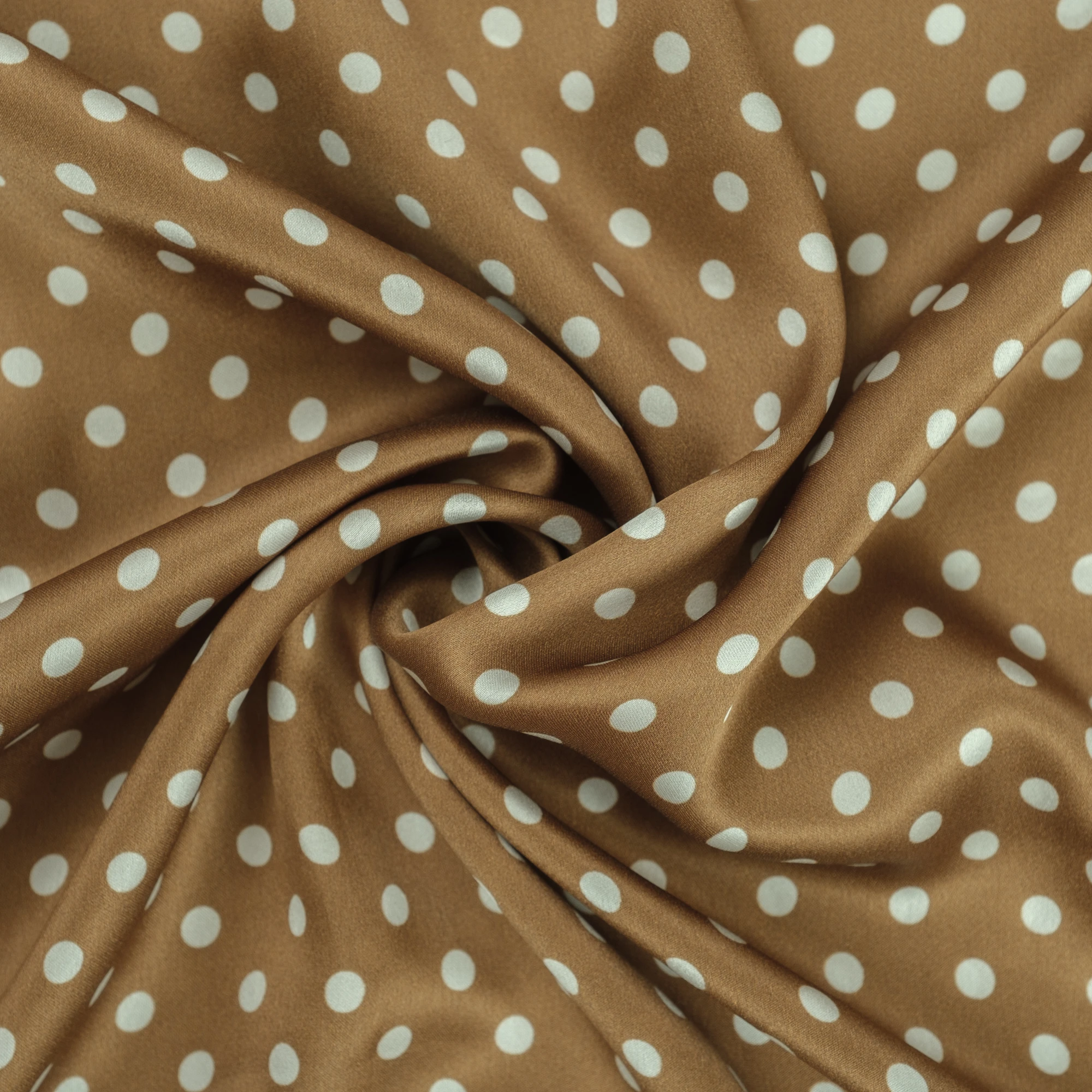 Luksusowy włoski jedwab w groszki. Urocza satyna jedwabna elastyczna w groszki na ciepłym, cynamonowym tle to wspomnienie lat 50. W Stanach Zjednoczonych nie było wówczas kobiety, która nie miałaby sukienki w ten wzór. Groszki są dość małe, luźno rozrzucone po błyszczącej tafli jedwabiu. Jedwab satynowy jest lekki i zwiewny, bardzo cienki, ale nieprześwitujący. Wierzch tkaniny satynowej jedwabnej jest gładki i śliski, szlachetnie połyskujący, natomiast spód jest biały i matowy, naturalnie przyjemny w kontakcie ze skórą.