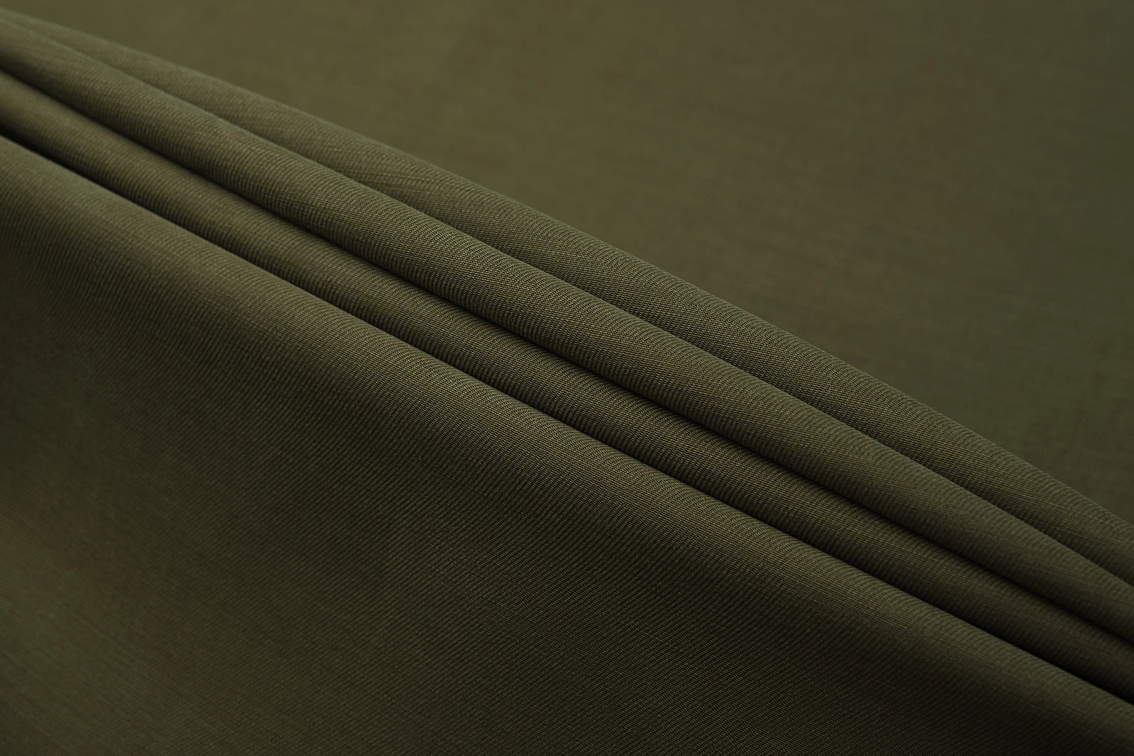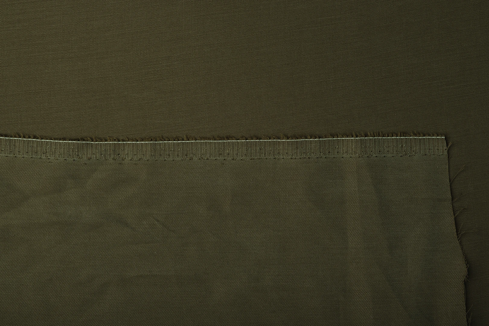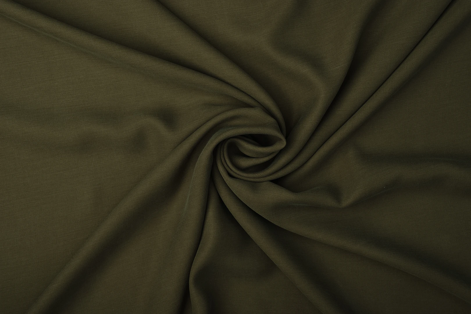 Tkanina tencel w stonowanym, nienasyconym, militarnym odcieniu khaki jest leciutka, cienka, lejąca i zwiewna. Pomimo niewielkiej grubości nie prześwituje, a jeden z podstawowych splotów tkackich – skośny, powoduje, że po obu stronach posiada delikatny, strukturalny wzór skośnych prążków. Dodatkowo nasza nieelastyczna tkanina jest matowa, lekko mięsista i śliska w dotyku.