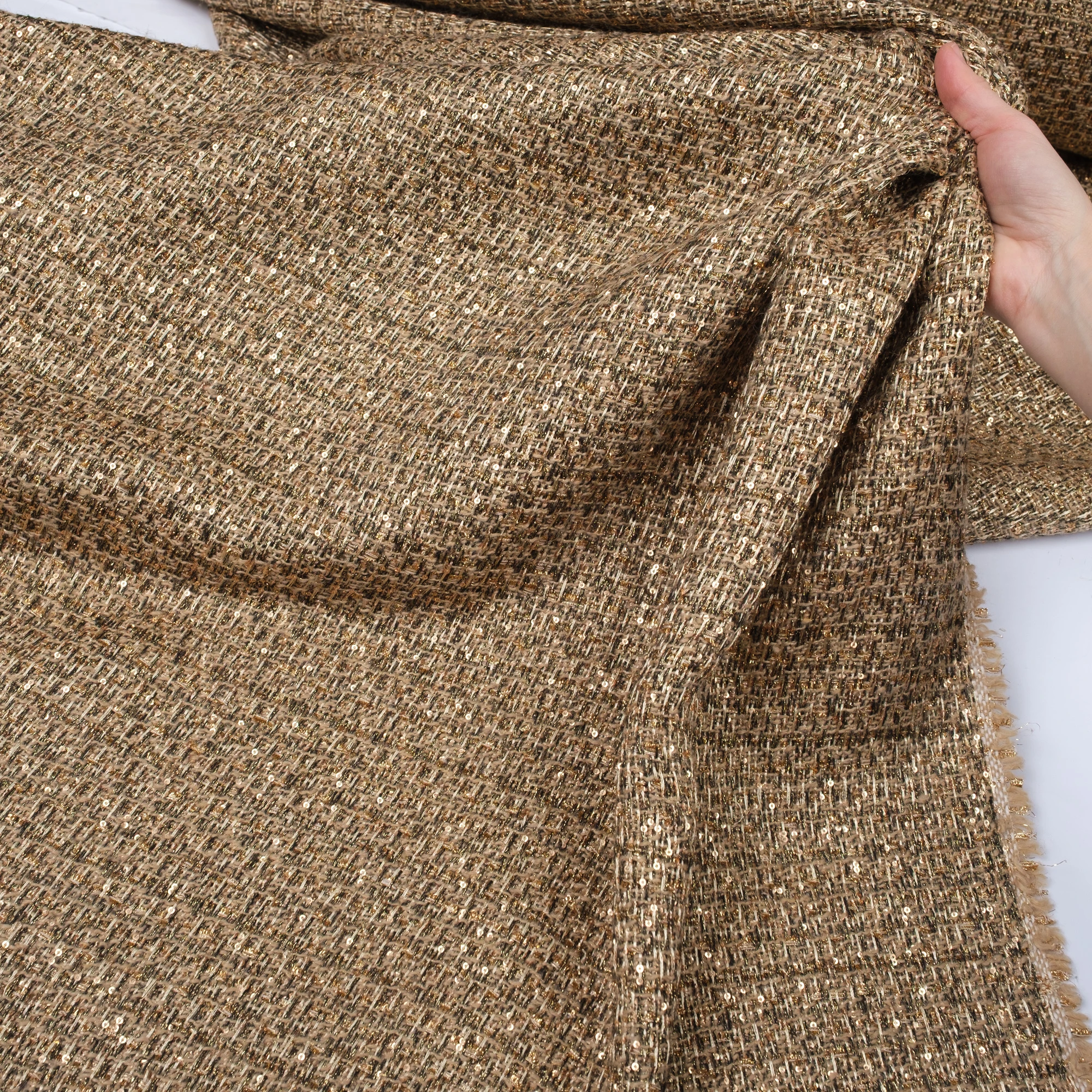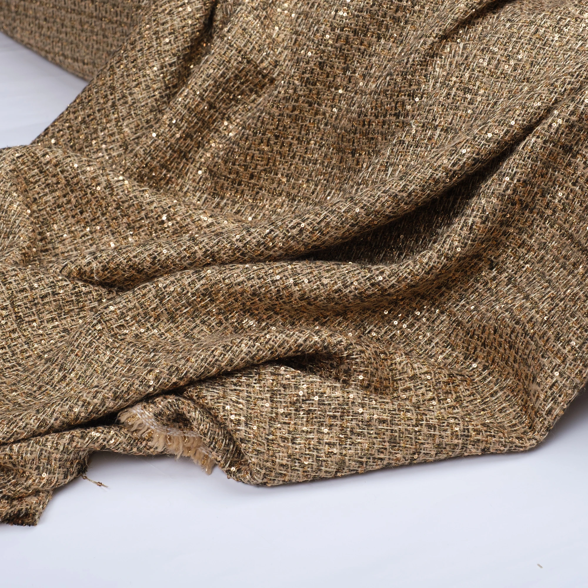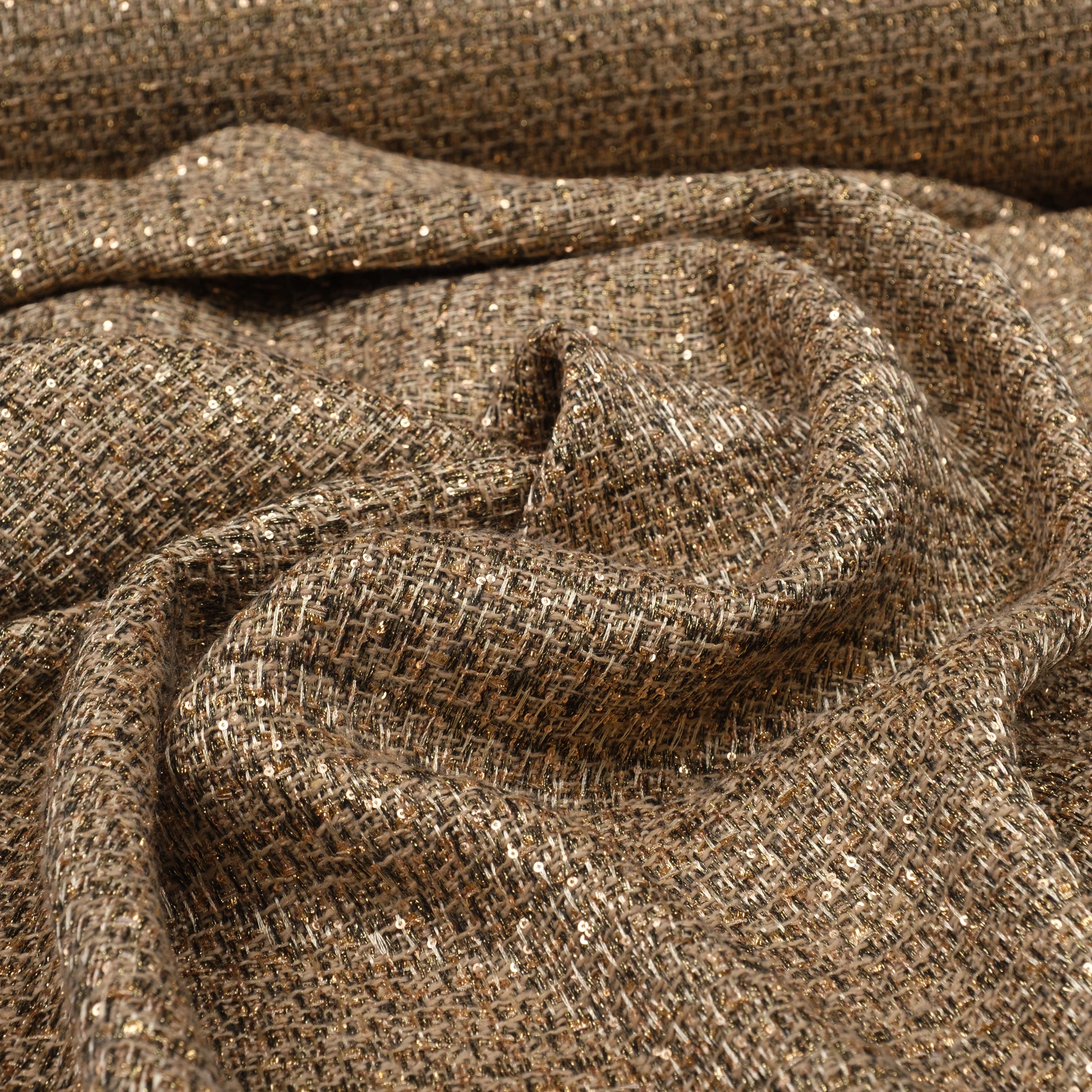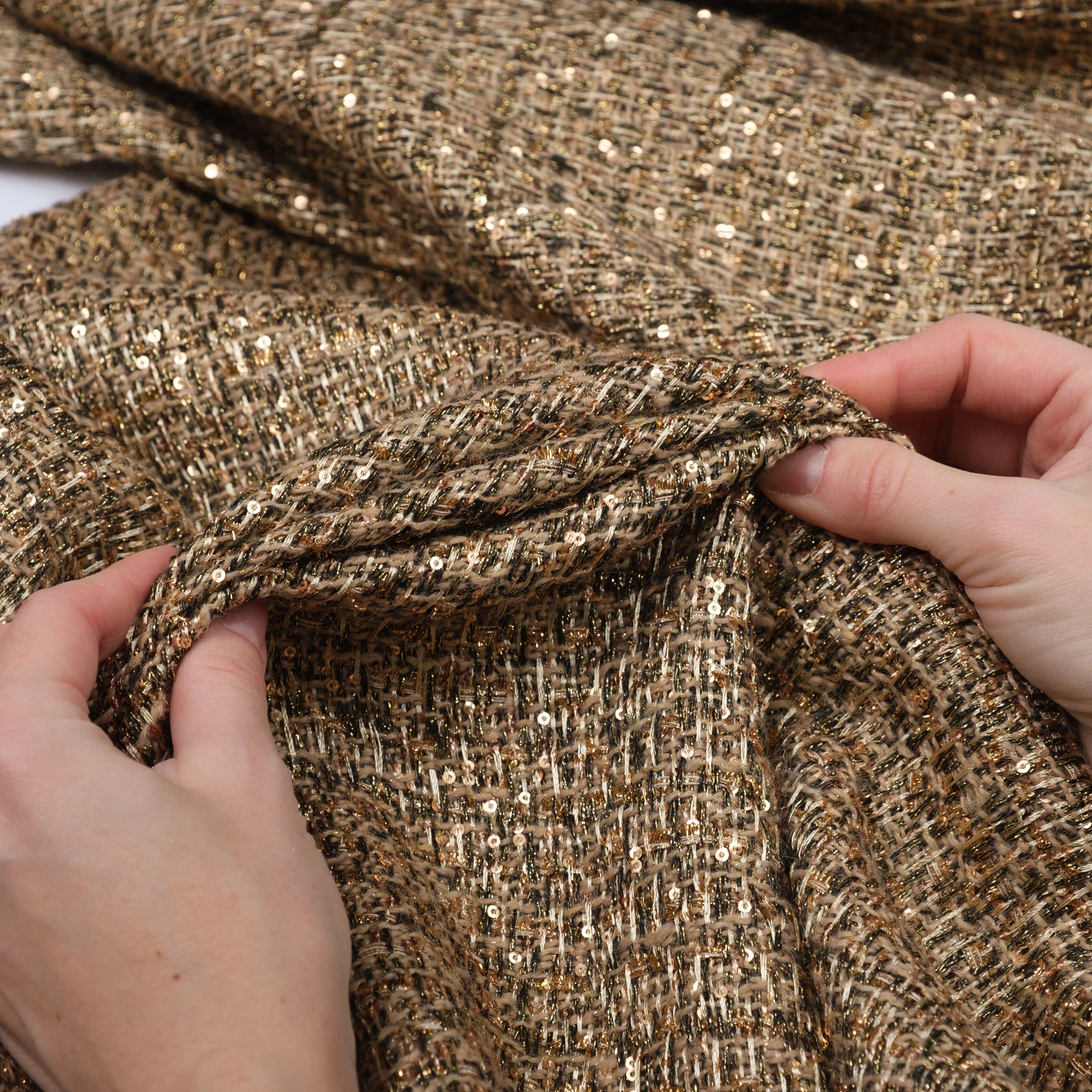 Tkanina Chanelka Złota z Cekinami – Elegancka Tkanina Kostiumowa