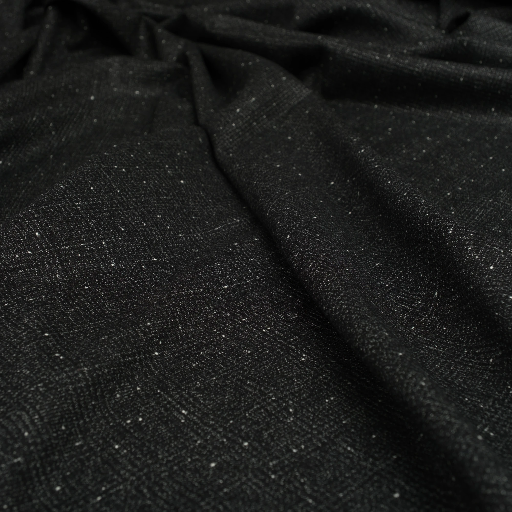 Szlachetna tkanina tweedowa wykonana w 100% z naturalnej wełny. Charakteryzuje się wyraźną, gęstą strukturą splotu oraz subtelnym, wielotonowym melanżem, który nadaje jej głębi i wyrazistego, ponadczasowego charakteru.