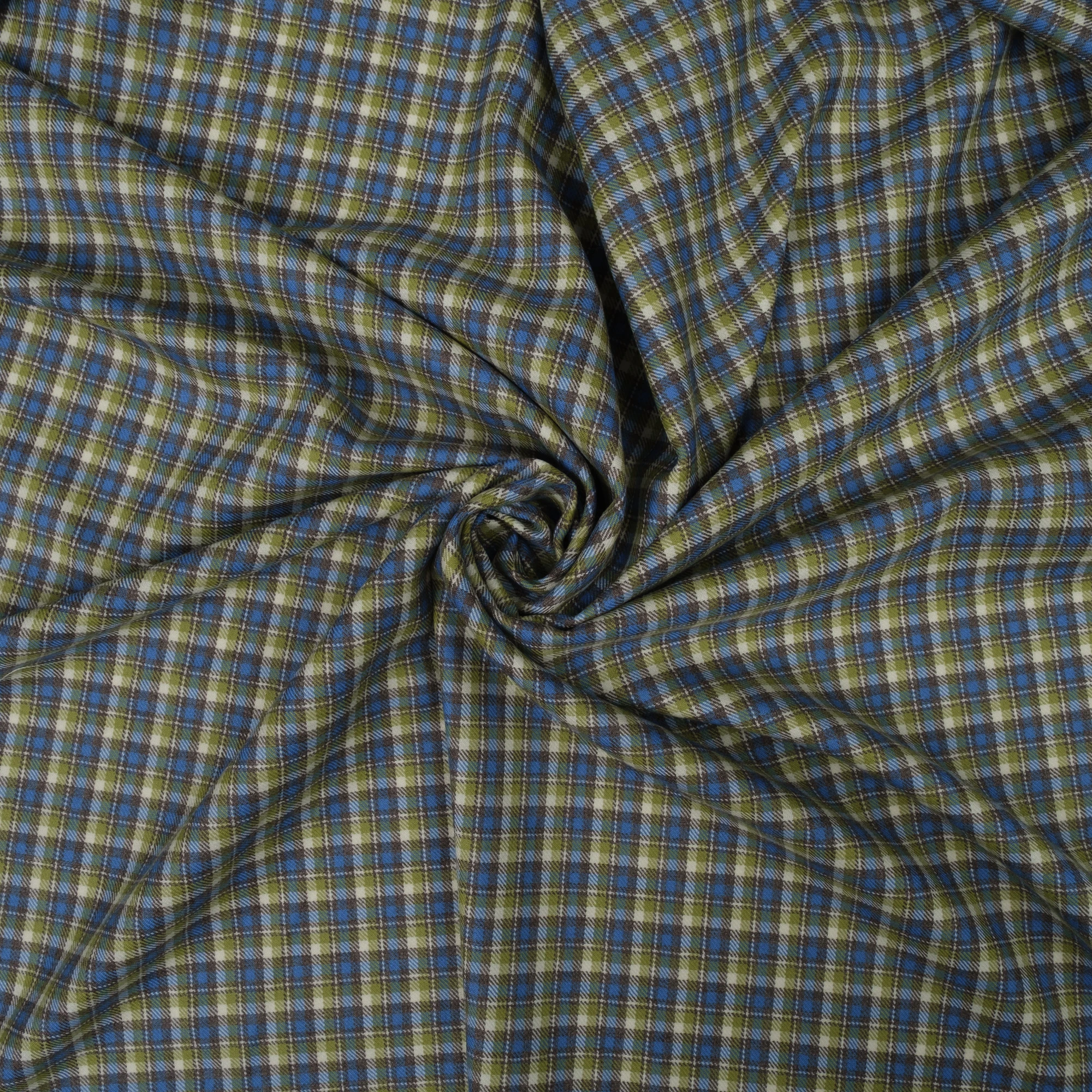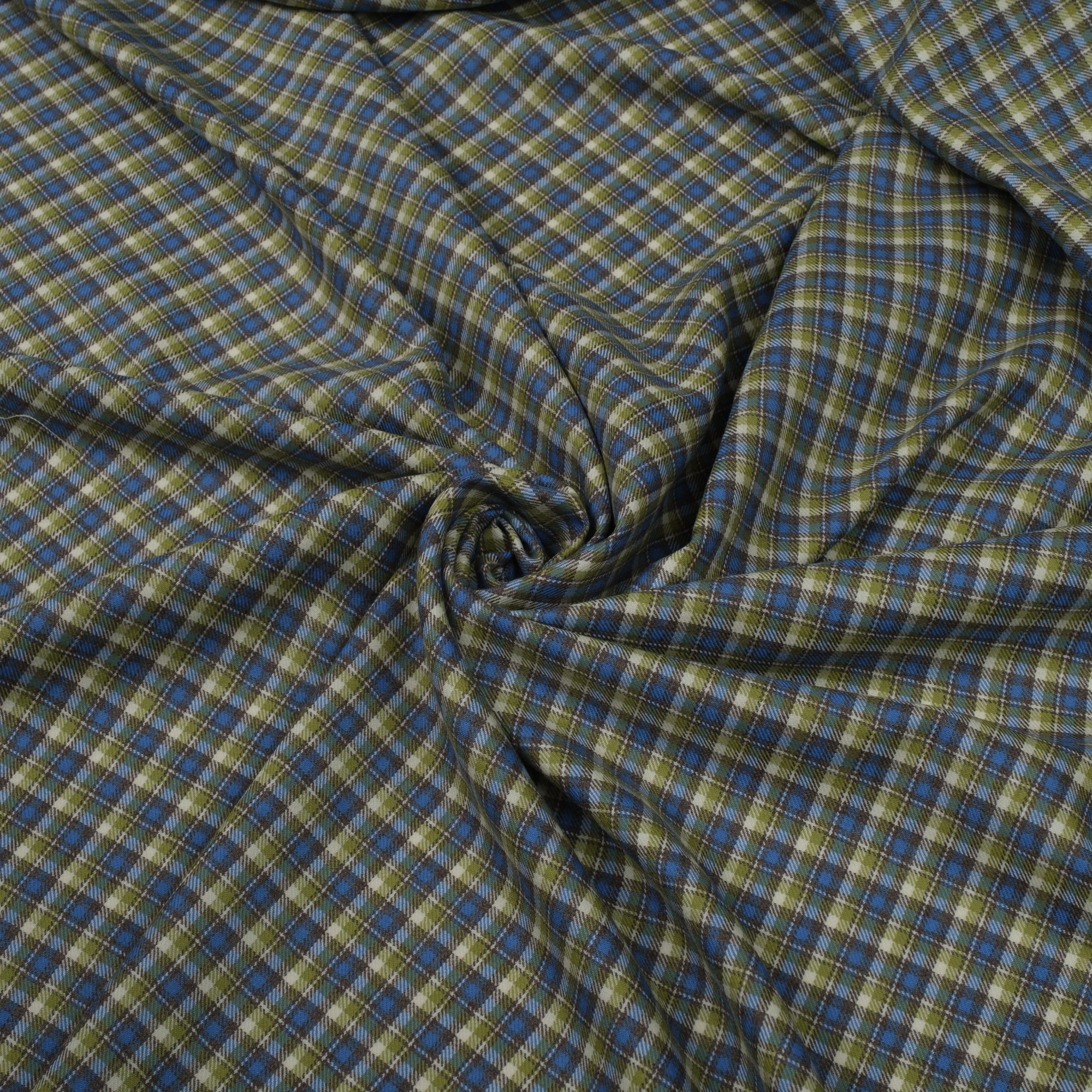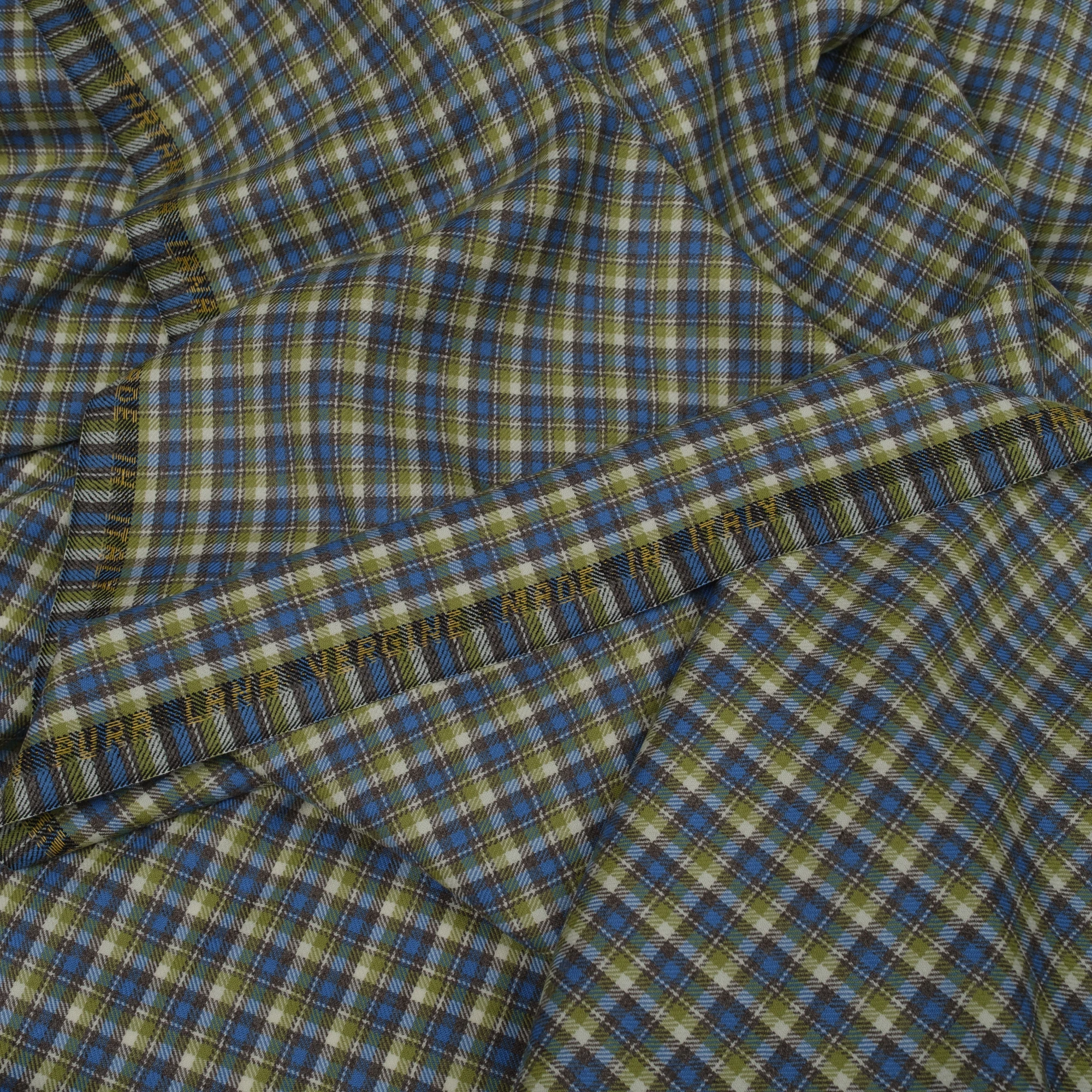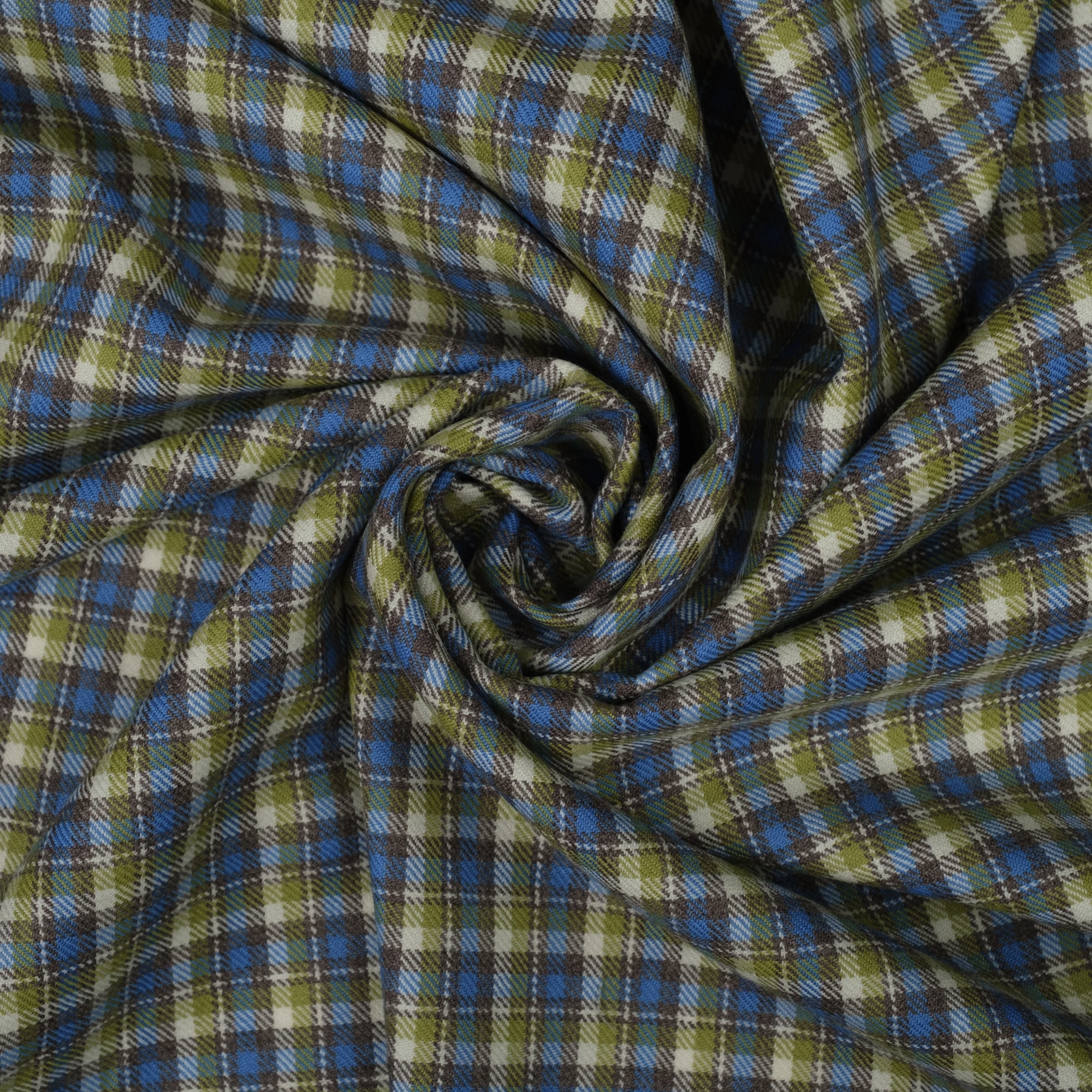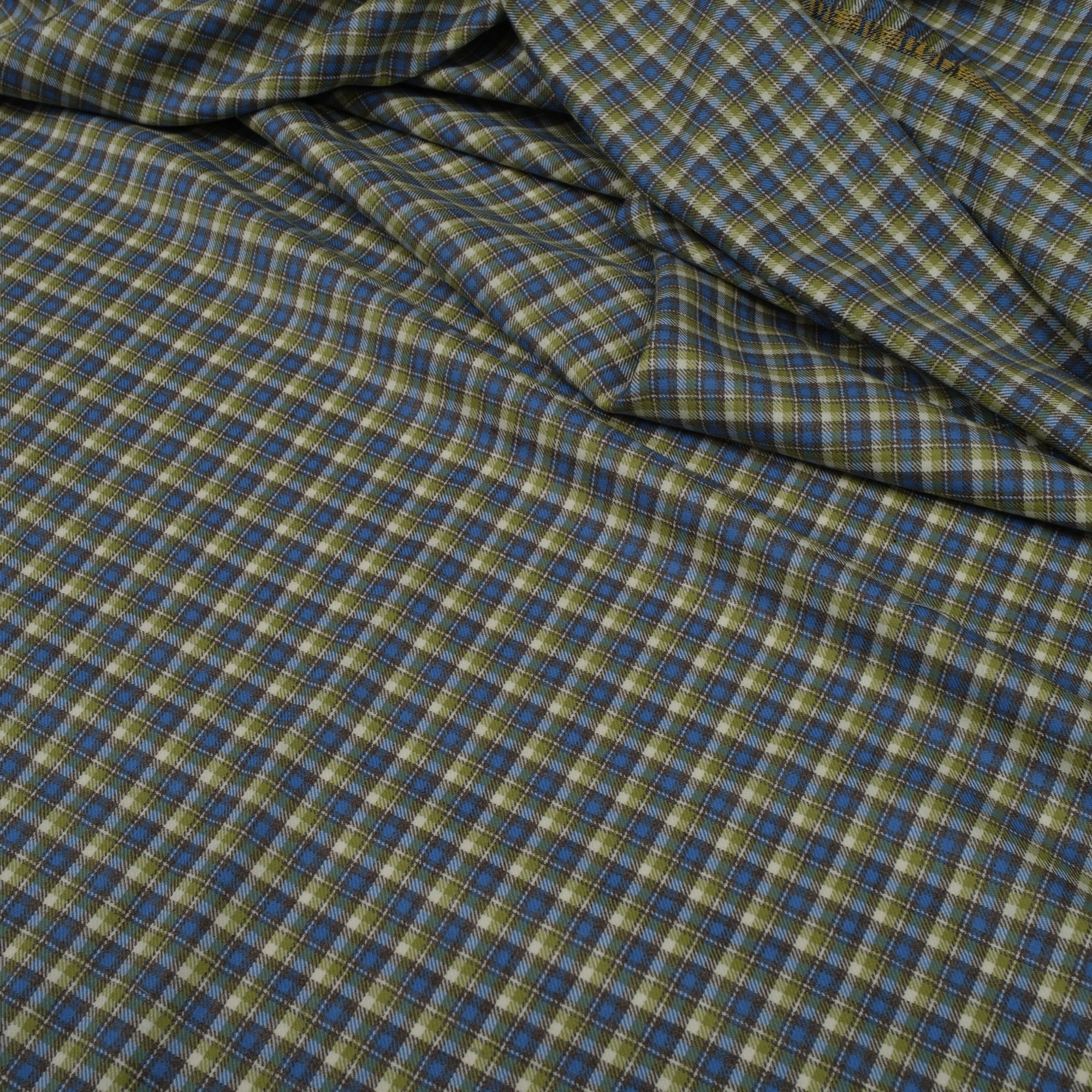 Naturalna TKANINA WEŁNIANA na żakiet spodnie w kratkę w odcieniach Zielono-niebieskiego