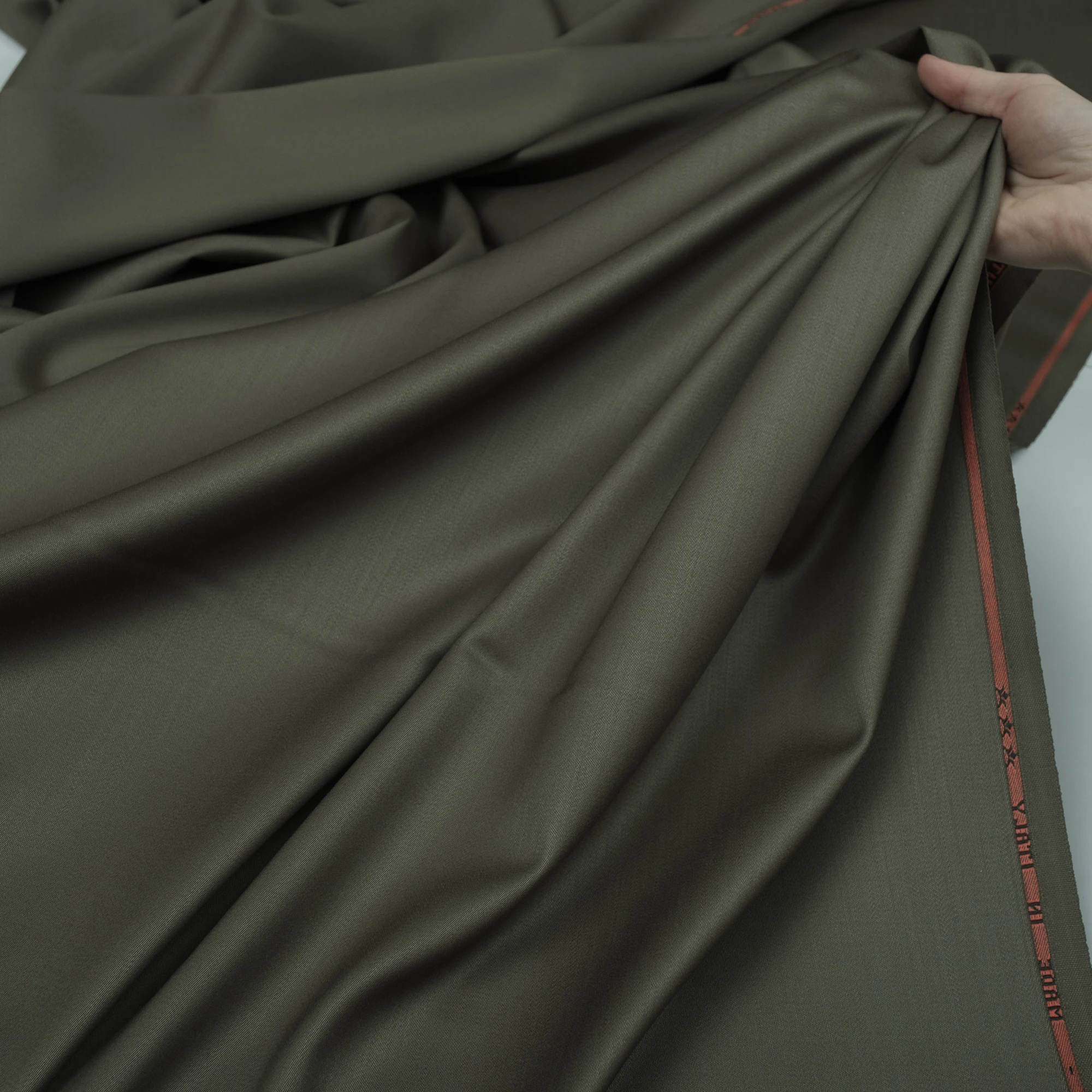 Elegancka włoska tkanina wełniana z dodatkiem elastanu w wyjątkowym odcieniu ciemnej oliwki to propozycja dla osób ceniących ponadczasowy styl i najwyższą jakość. Materiał pochodzi z włoskich tkalni klasy haute couture, znanych z precyzji wykonania i ekskluzywnego wykończenia.