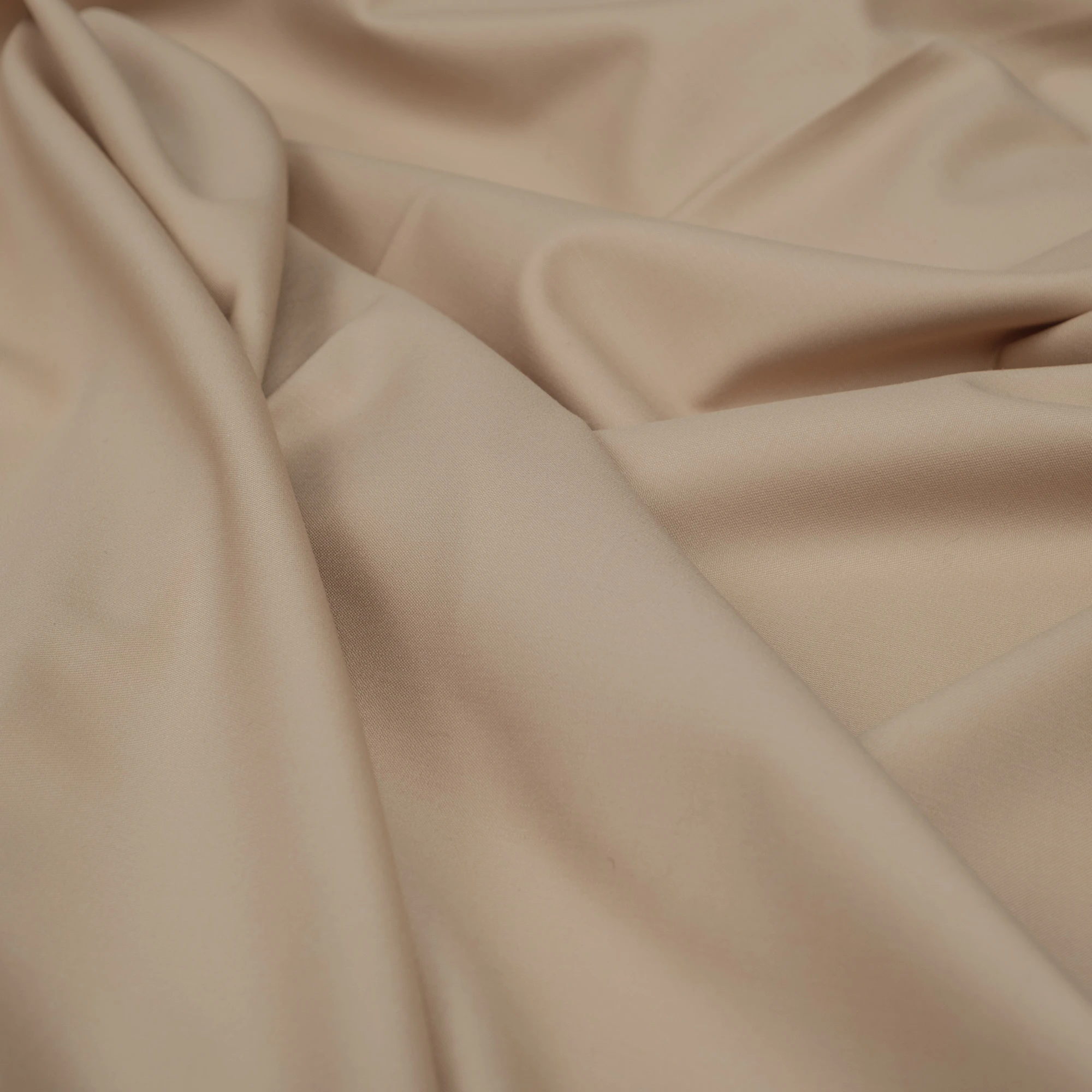 Elegancka włoska wełna najwyższej jakości na kostiumy, garnitury oraz klasyczne sukienki w kolorze beżowym. W składzie tkaniny oprócz czystej wełnianej wysokogatunkowej przędzy znajdziemy 3% elastanu zapewniający komfort oraz odporność na zagniecenia. Wełna kostiumowa w dotyku jest gładka, przyjemna, odporna na mechacenie. Zwarty splot odpowiada za wytrzymałość tkaniny, która posłuży nam przez wiele sezonów. Tkanina dość dobrze trzyma formę, plastycznie się układa.