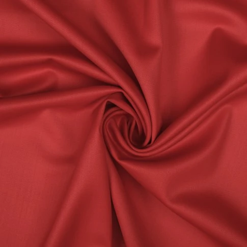 Elegancka czerwona wełniana tkanina najwyższej jakości na kostiumy, garnitury oraz klasyczne sukienki. W składzie tkaniny oprócz czystej wełnianej wysokogatunkowej przędzy znajdziemy 3% elastanu zapewniający komfort oraz odporność na zagniecenia. Wełna kostiumowa w dotyku jest gładka, przyjemna, odporna na mechacenie. Zwarty splot odpowiada za wytrzymałość tkaniny, która posłuży nam przez wiele sezonów. Tkanina dość dobrze trzyma formę, plastycznie się układa.