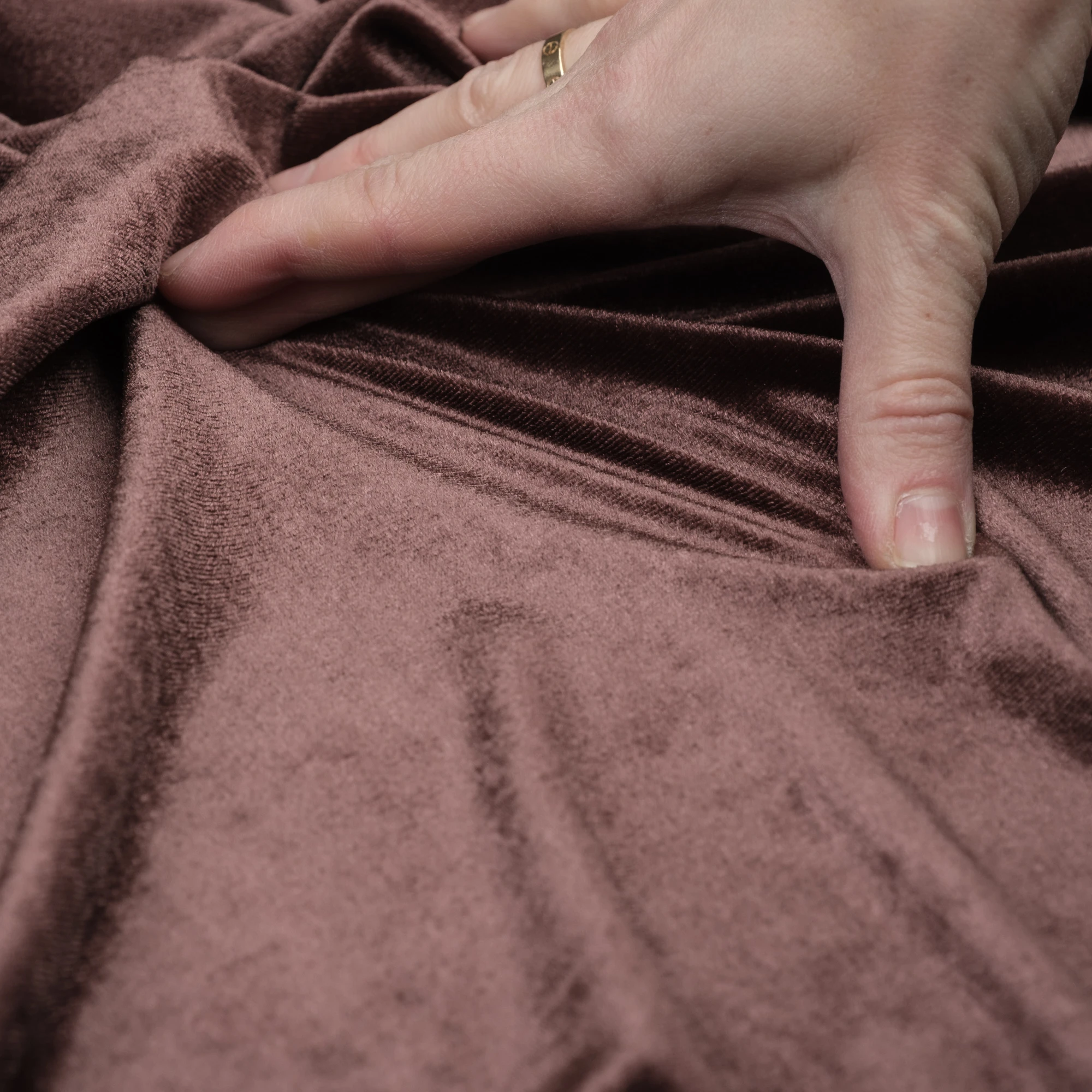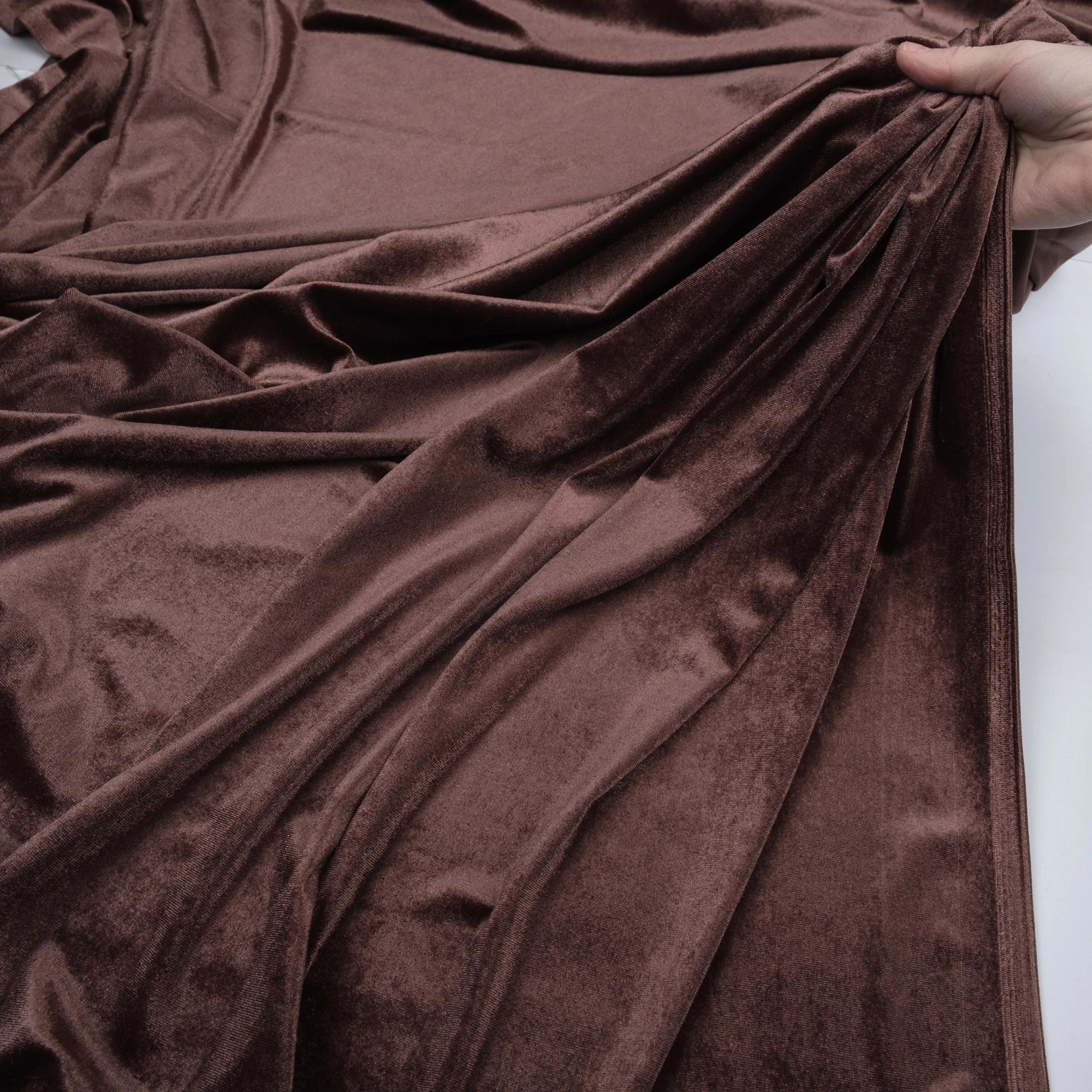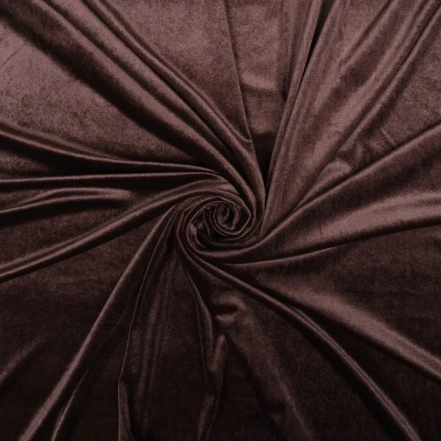 Welur elastyczny w barwie głębokiego brązu to tkanina, która pięknie się prezentuje i jednocześnie jest niesamowicie wygodna w noszeniu. Z weluru uszyjemy modne bluzki, sweterki a także kostiumy o dopasowanym kroju. Elastyczna dzianina welurowa będzie także odpowiednia na stroje wieczorowe i estradowe.