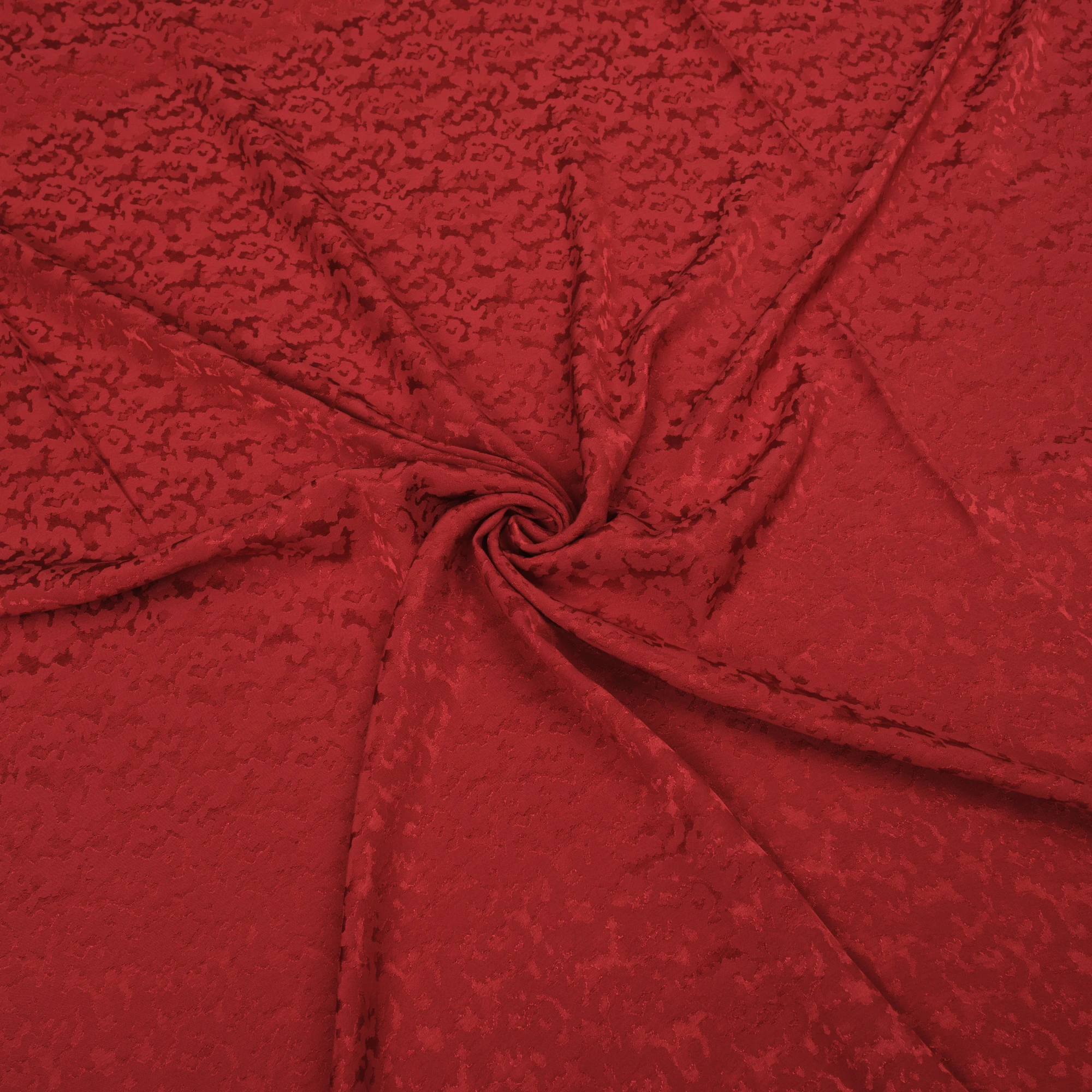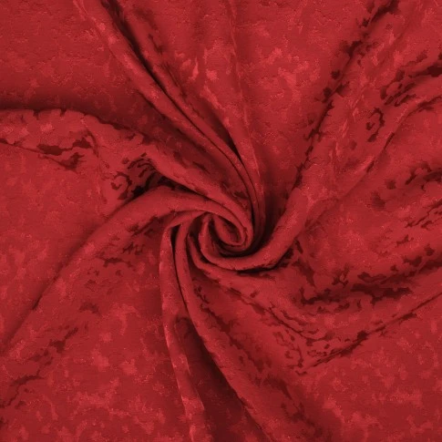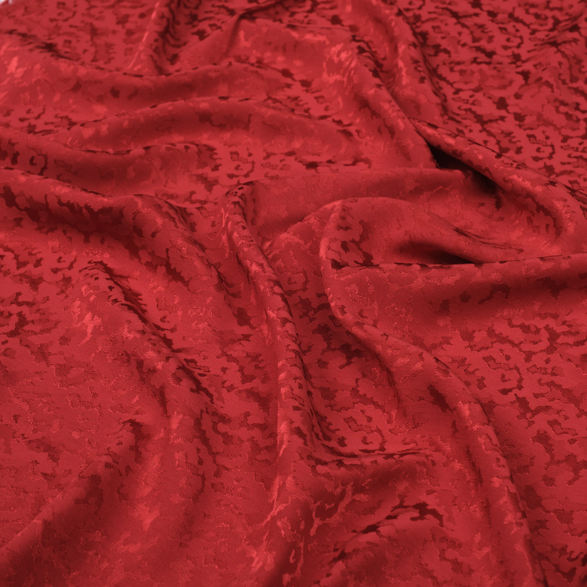 Włoska tkanina wiskoza jest to żakard w przepięknym odcieniu malinowo-czerwonym. Dwustronna tkanina o szlachetnym, strukturalnym wzorze abstrakcyjnym jest delikatna i wyjątkowo elegancka.